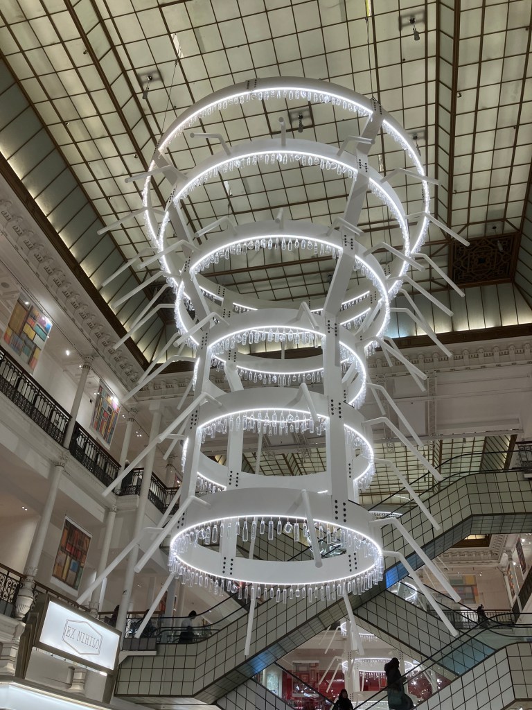 Commercialement , dans ce genre d’endroit , c’est le mois du Blanc , tradition initiée au XIXème siècle par les fondateurs du Magasin !!! D’oú cette invitation à des artistes à bien vouloir la perpétuer , depuis 2016 (Ai Weiwei ).