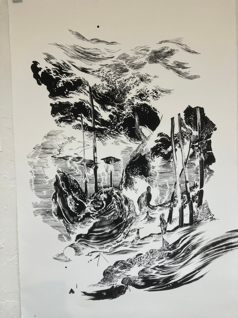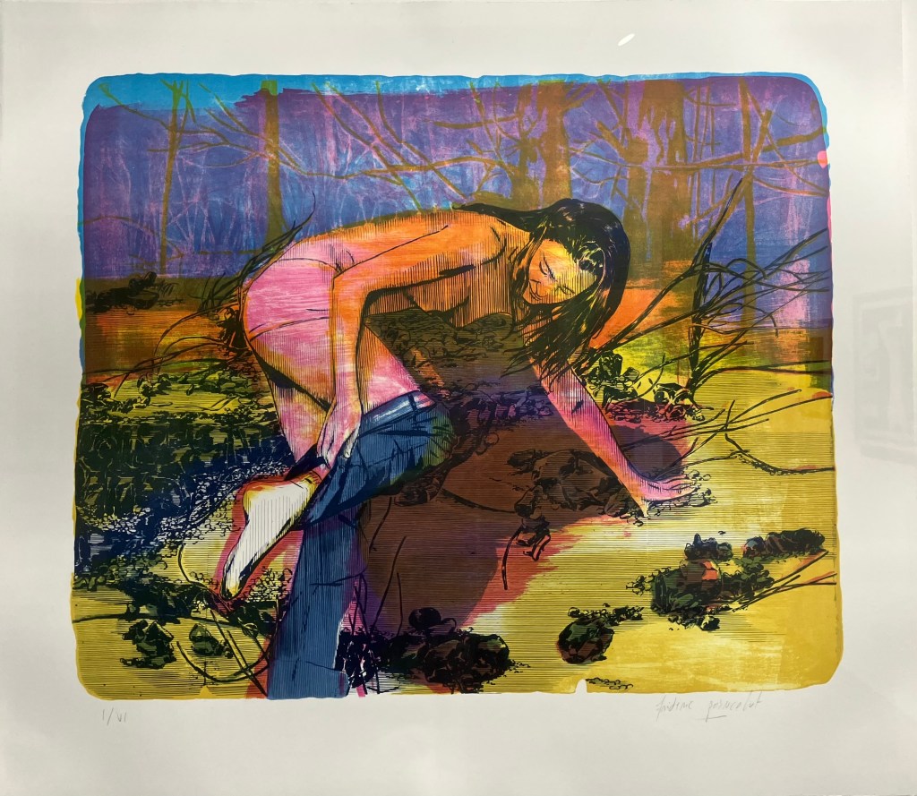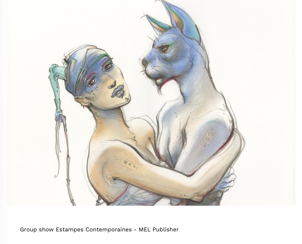 Manifestampe avait indiqué, à tort , le 12 décembre comme date de fin de l’expo émotions de la sociéte des peintres graveurs , et arrivée dans la salle du Vieux Colombier je l’ai trouvée vide , mais Claire Illouz était là, seule , et elle a eu la gentillesse de me remettre le catalogue pour me consoler , quel regret, tout était beau .