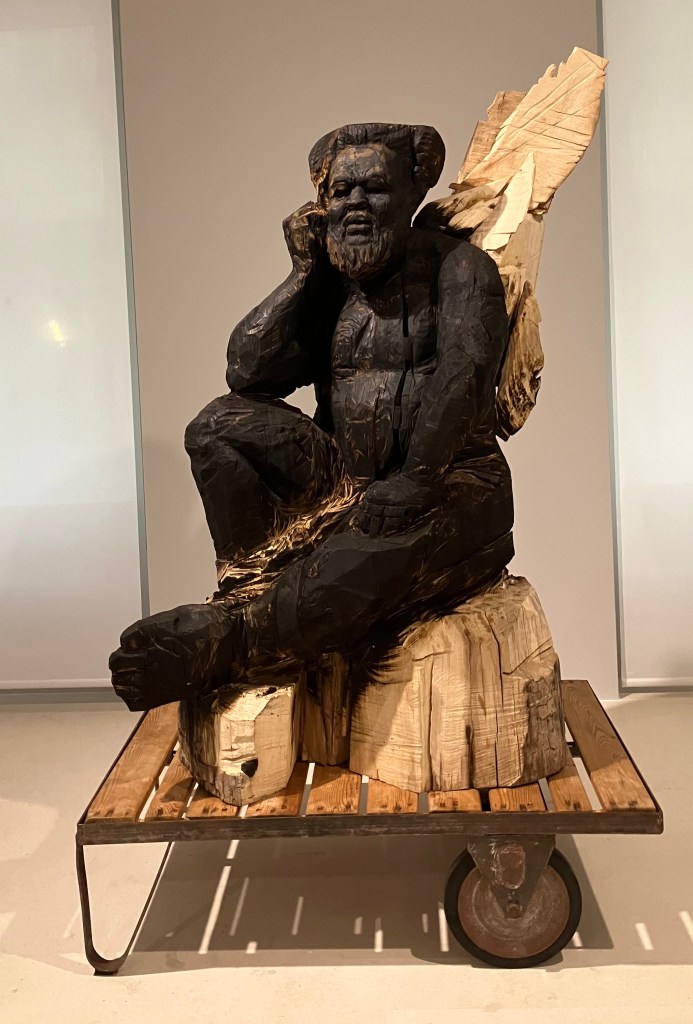 C’est la première exposition àParis de cet artiste américain noir né en 1976 : The fire this time , tableaux et sculptures en bois.