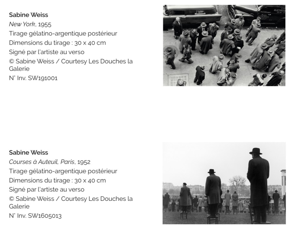 Un bel hommage y est rendu à la grande photographe suisse , née en 1924 , qui vient de recevoir le prix 2020 women in motion pour l’ensemble de sa carrière : la grande sabine Weiss ! On connaît et on aime tous ses photos: les jeux d’enfants, les scènes de rue, les milieux populaires . (Jusqu’au 20 février ):