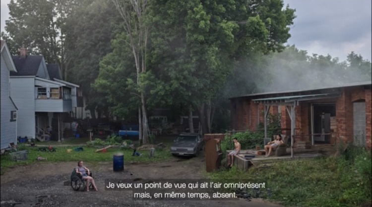 2 -On reste dans le 3 eme, et , of course, on file chez Templon ,28 du Grenier Saint Lazare . Oui oui, vous connaissez par cœur son site. Mais voir en vrai les 16 photos panoramiques de la série an eclipse of moths de Gregory Crewdson , à laquelle il a consacré deux ans de travail, , c’est , et vous opinez, une magnifique expérience . Ce ne sont, cette fois – ci, que des scènes d’extérieur, dans une petite ville de la Nouvelle Angleterre .on y entrevoit la précarité, la fragilité ,l’échec, le désir de rédemption . Le maître incontesté de la photographie mise en scène a recherché les sites, conçu le storyboard, les éclairages, recruté des équipes, des acteurs . Il nous présente ainsi jardins à l’abandon, des malades, des feux de signalisations qui dégringolent ,desc gens désœuvrés qui sont bien les papillons de nuit du titre , qui s’aglutinent et perdent leurs repères .