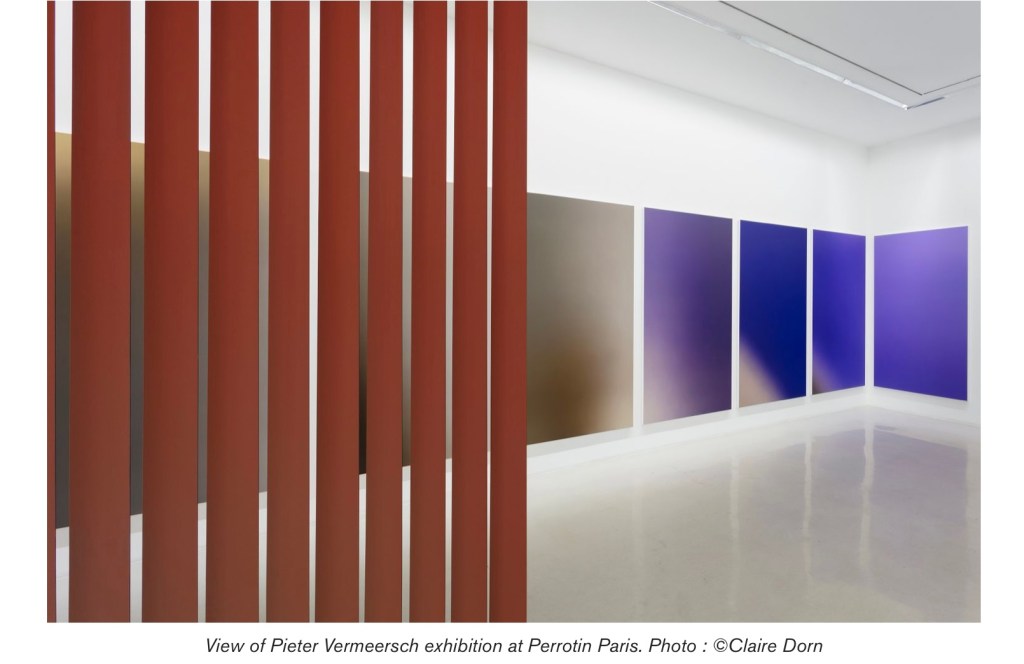 Peter Weemeersch, assez minimaliste, géométrique, rigoureux , coloriste , qui aime , comme nous les superpositions qui ne recouvrent qu’en partie, un régal .