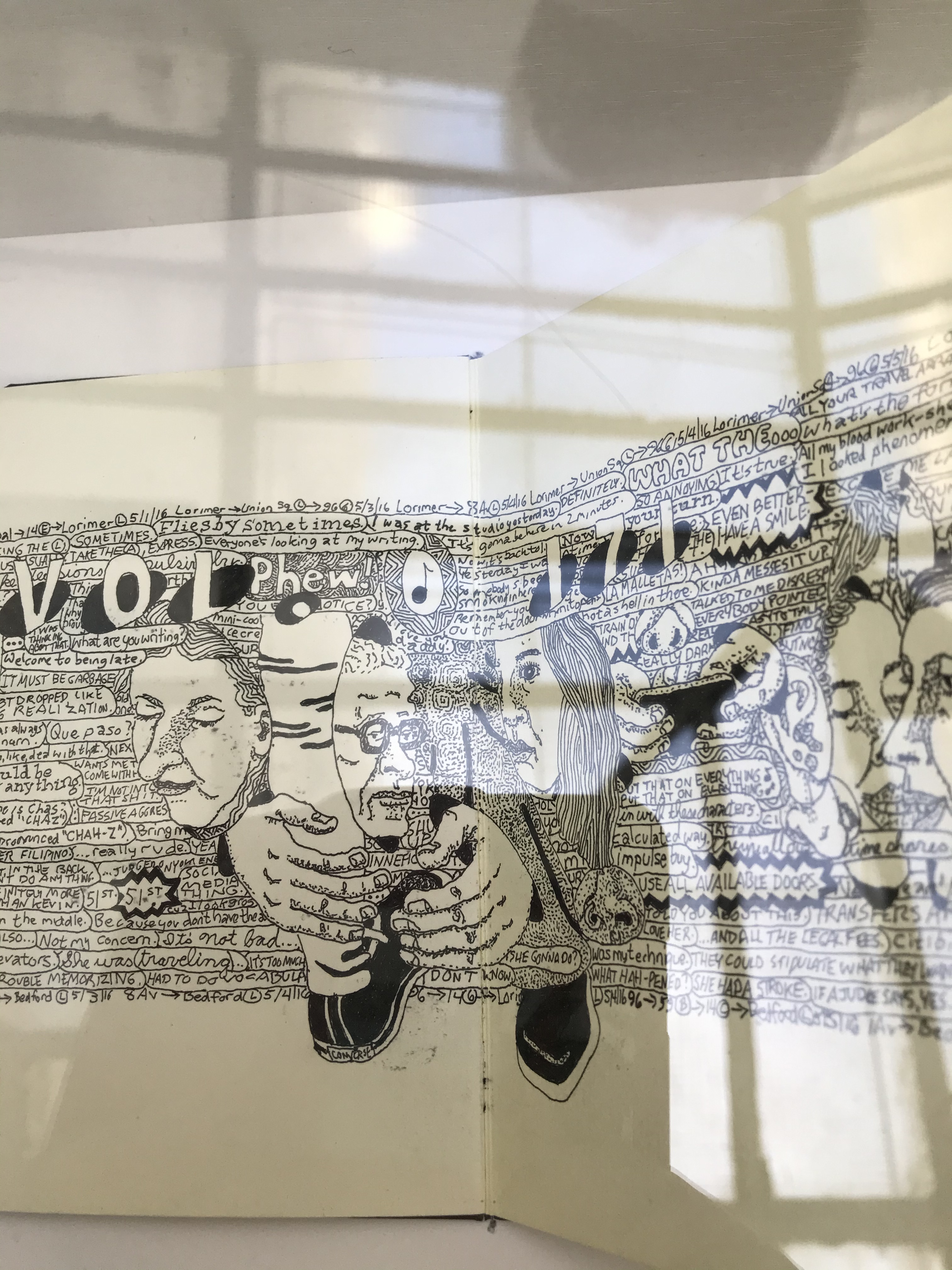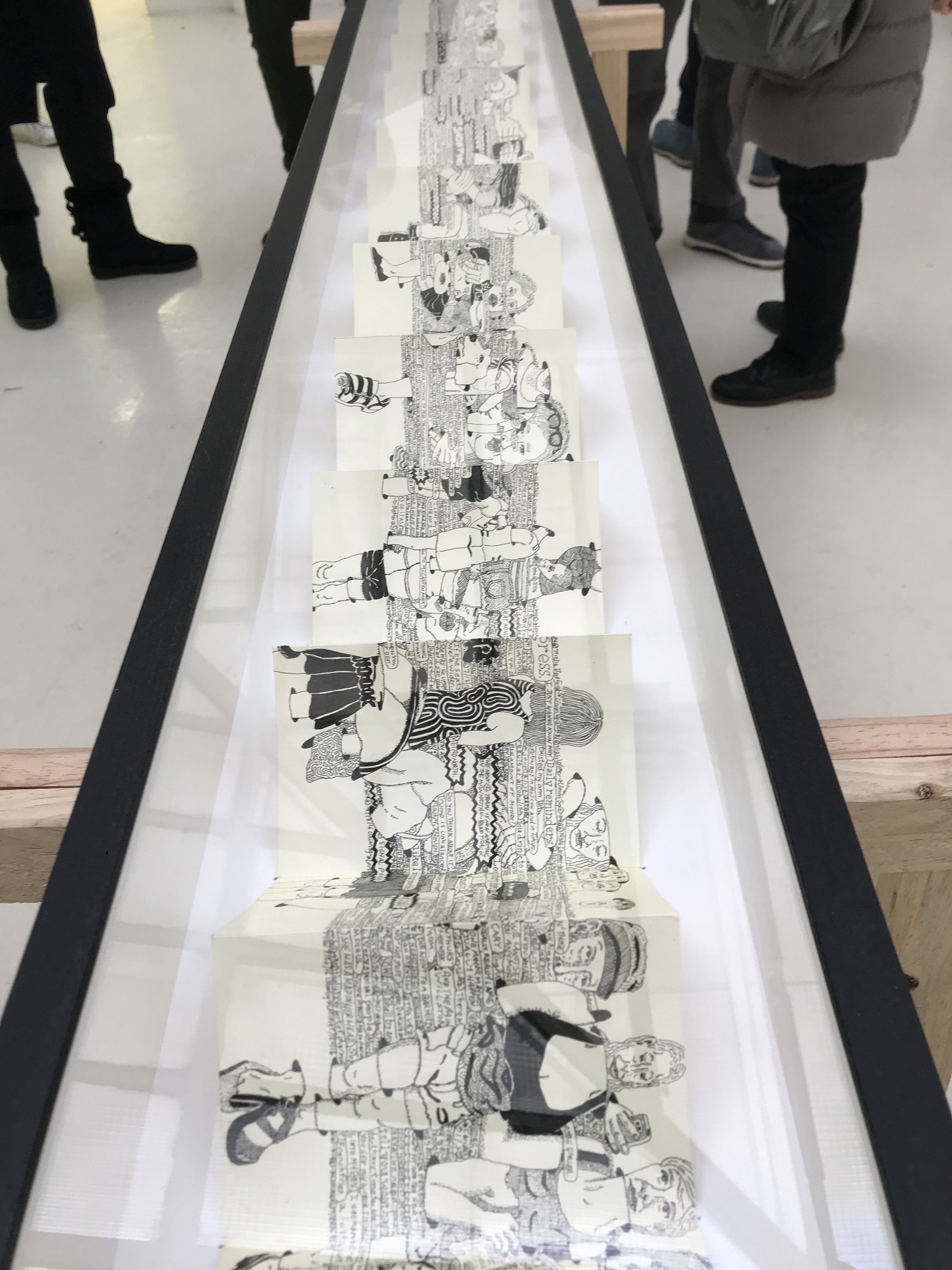 Vous verrez un incroyable Leporello, à l’encre , plein d’écrits et de personnages, et des strates magnifiques .