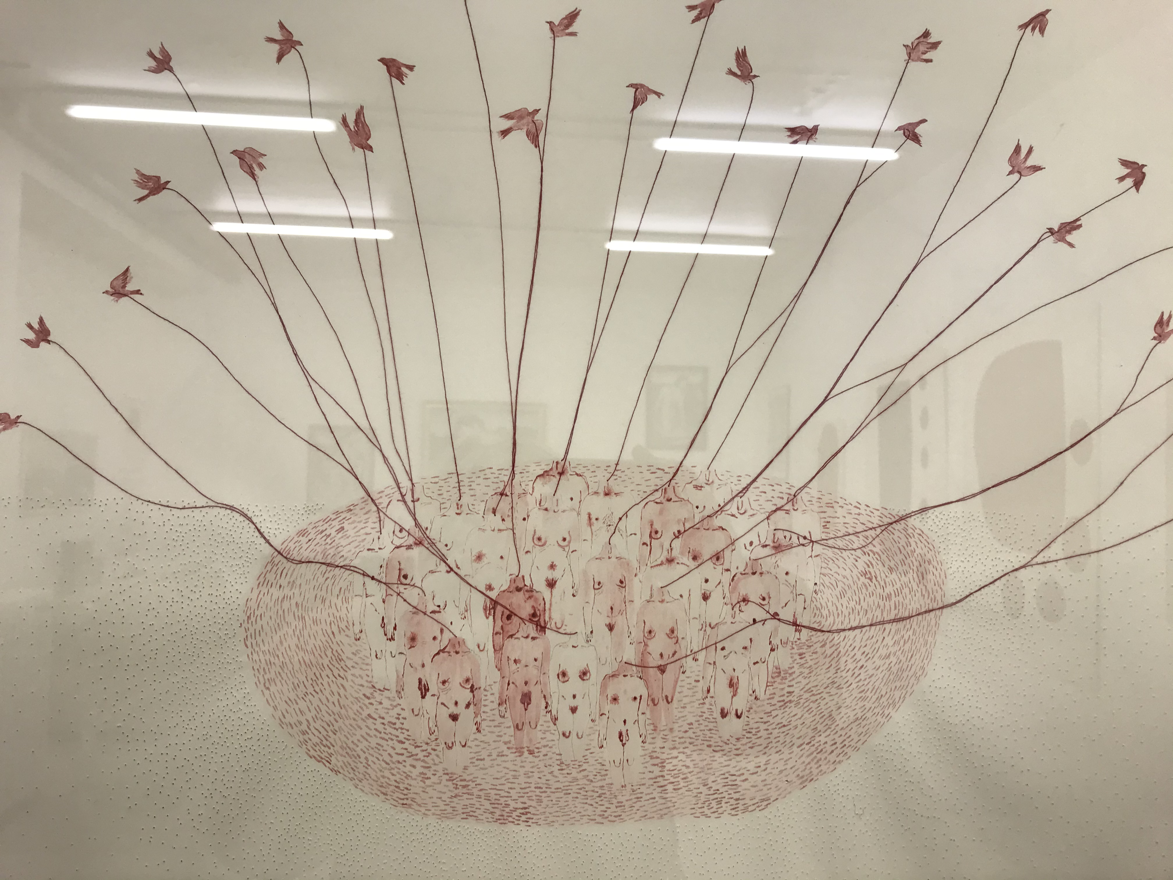 Elle aurait dû être montrée lors de la 14 eme édition de notre cher salon Drawing Now , qui n’a pas pu avoir lieu cette année , alors elle est installée ici en ce moment . On nous concocte aussi des podcasts bientôt en ligne , oui , oui, je vous dirai quand ce sera fait ! Le prochain Drawing Now devrait , conditionnel, avoir lieu en juin, et présenter une expo en collaboration avec le frac Picardie , sujet : dessin et écologie .