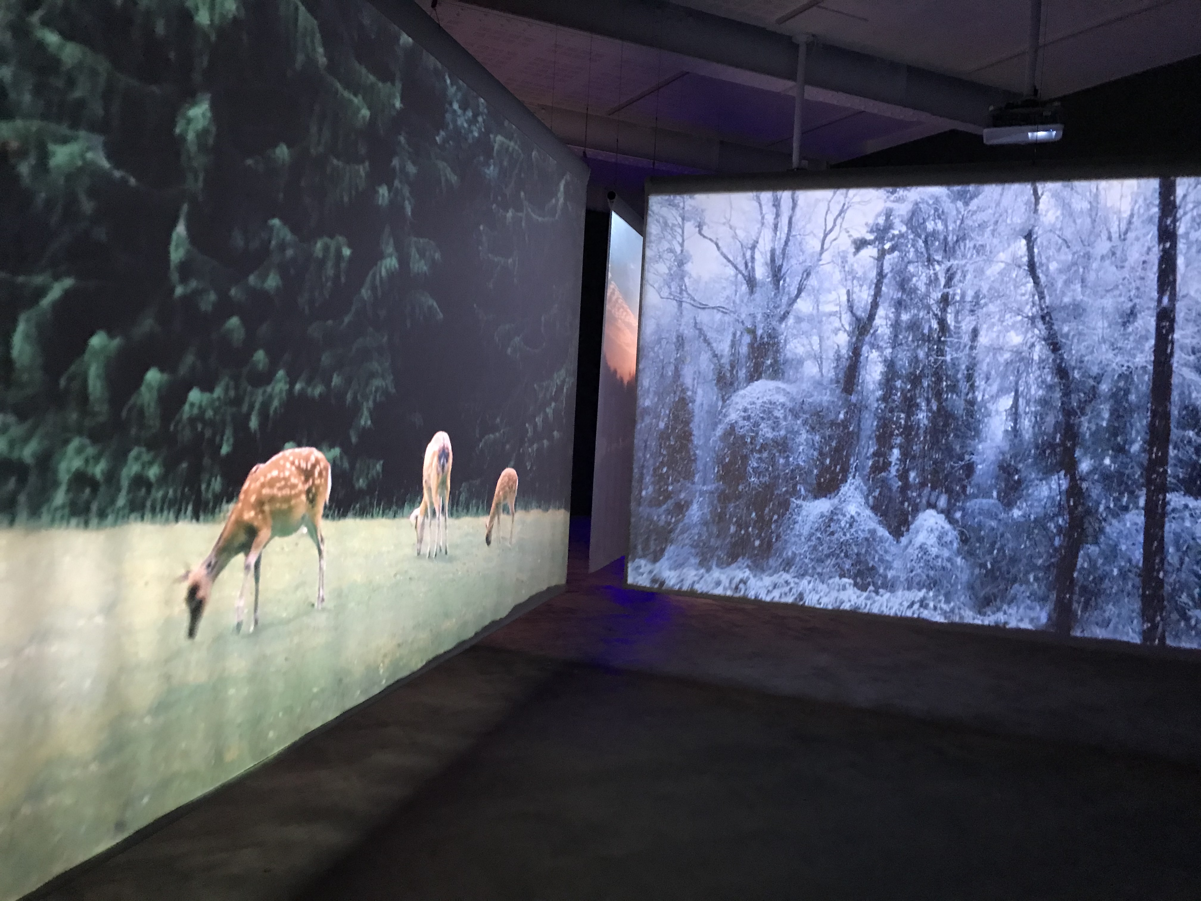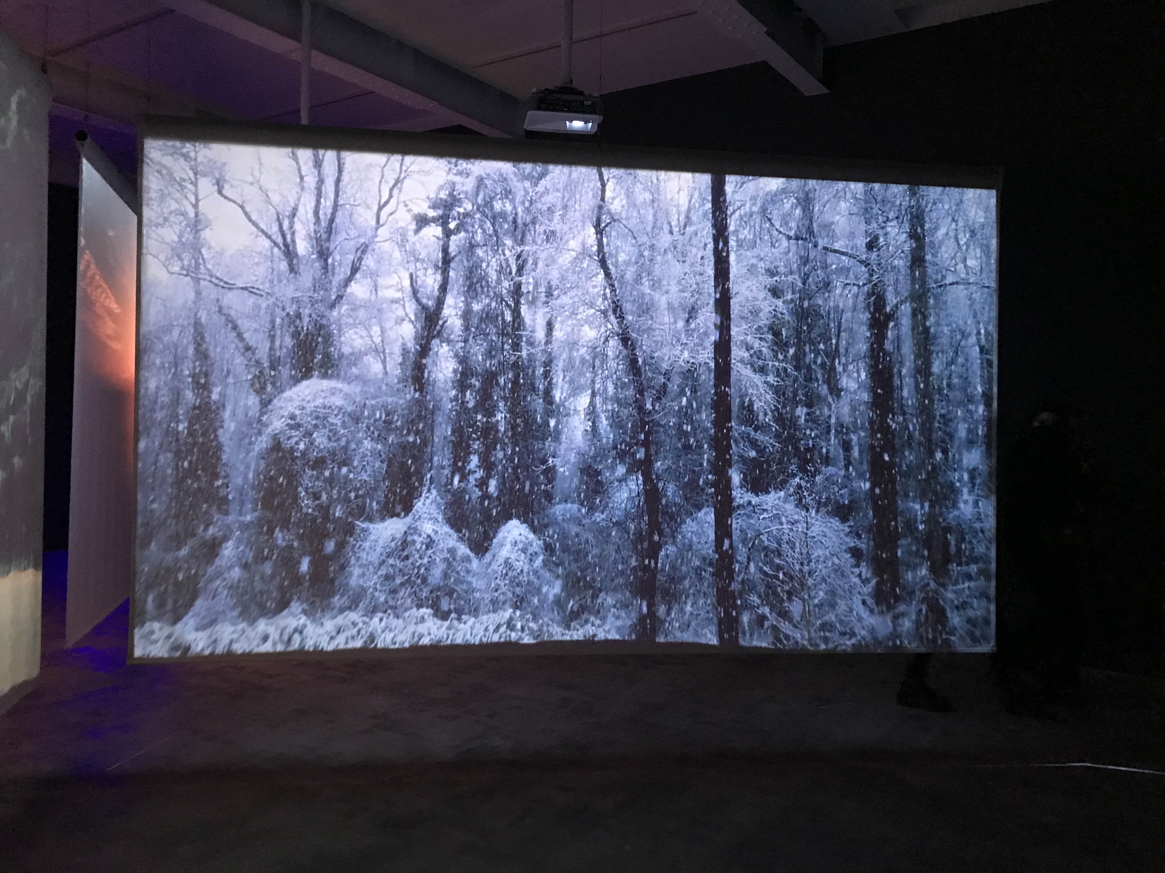 Au sous – sol , 4 écrans , on imagine les 4 saisons, sans l’homme , s’il disparaît tout continue, la pluie, le coucher de soleil, les animaux . Le titre : les disparus ,et nous dit l’artiste , de façon subliminale, sont montrés les massacres du 20 eme siècle
