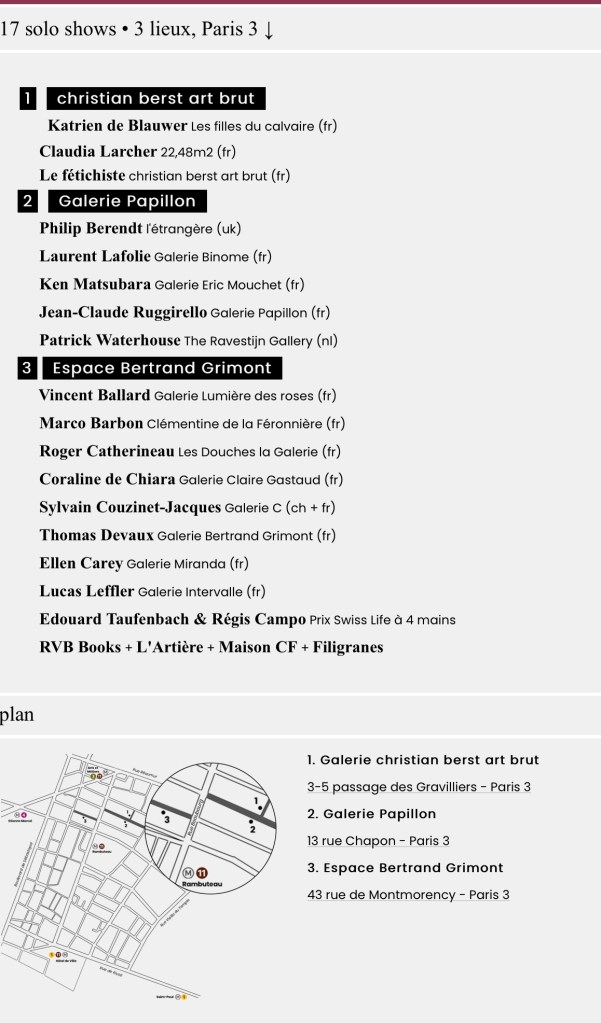 Cette année trois galeries du Marais presque contiguës s’ouvrent à 14 autres, pour présenter ces expérimentations . Voilà qui est réjouissant .