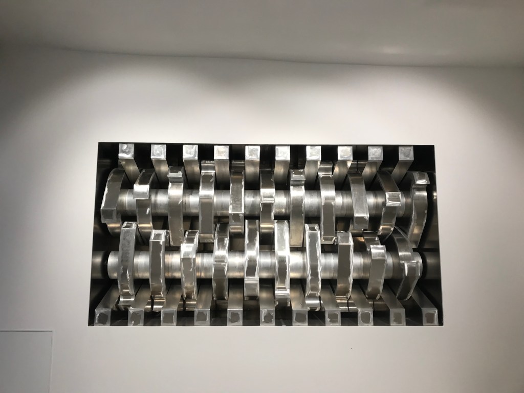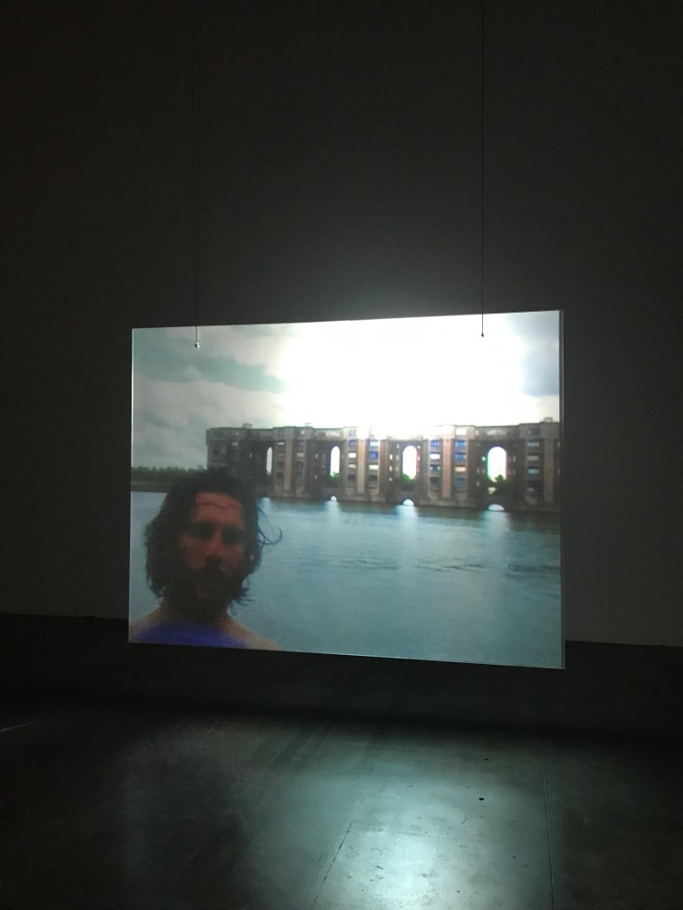 On y voit les éléments de la mécanique de l’automate ,qui sera remis a sa place apres l’expo , et d’autres oeuvres de Cyprien Gaillard .
