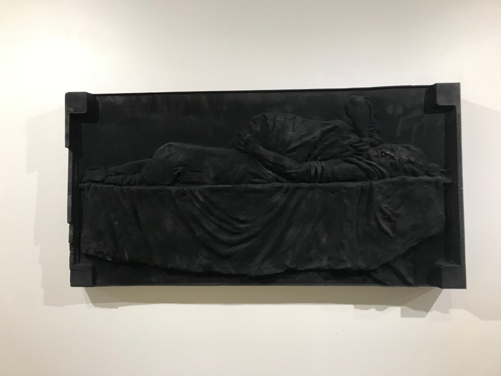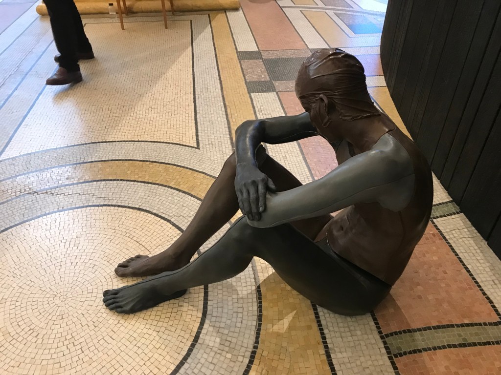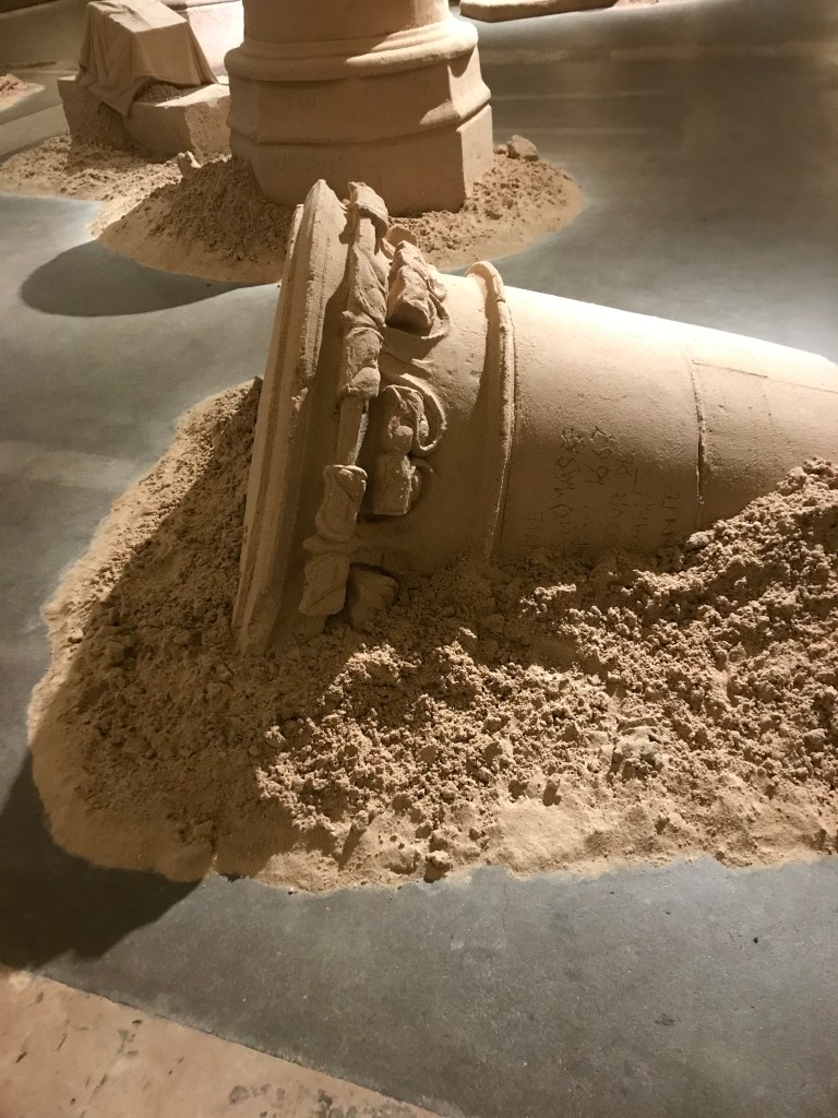 Sensibilisée à ces problématiques des oeuvres d’art dans l’espace public par une visite urbaine organisée par le centre Pompidou , je me suis rendue a Lafayette anticipations , voir la restauration de l’oeuvre négociée par Cyprien Gaillard .