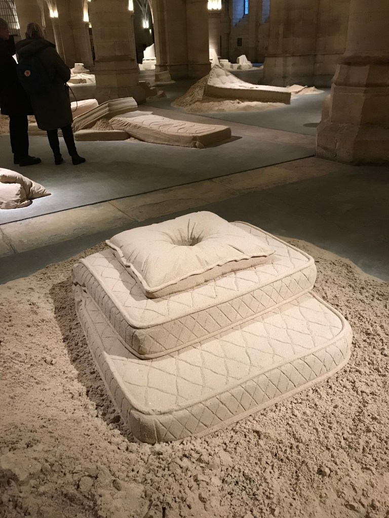 4 Theo Mercier nous convie dans son sleeping chapter, dans la salle des gens d’armes , à la Conciergerie, jusqu’au 8 janvier . Oui c’est payant , oui il faut réserver une plage horaire , oui ça vaut la peine , oui vos enfants vont adorer !!!