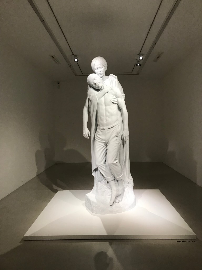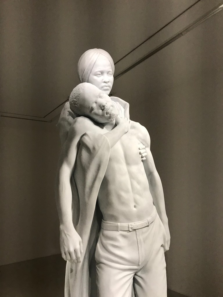 Tavares Strachan, avec in broad daylight, chez Perrotin ( impasse ) , jusqu’au 17 décembre , nous présente et honore les oubliés de l’histoire , en plein jour , en pensant sans doute aux vierges noires , en effet ces hommes et ces femmes sont tous des noirs . Ce travail évoque aussi celui de Kehinde Wiley, dont vous avez vu , en vous rendant à l’expo Munch, des oeuvres , peinture et sculpture , dans le grand hall du musée d’Orsay .Son ouvrage Encyclopédie de l’invisibilité est également exposé .
