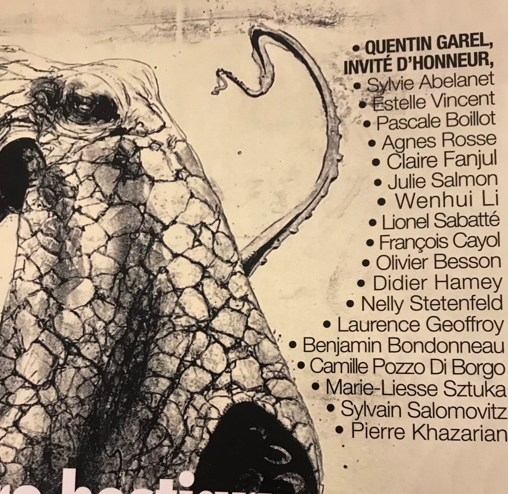 Le thème , vous l’avez compris , c’est le bestiaire, autour de Quentin Garel , invité d’honneur , avec poulpes, chouettes, gorilles ,poissons , animaux inventés,, éléphants , girafes, oiseaux , baleines, loups …