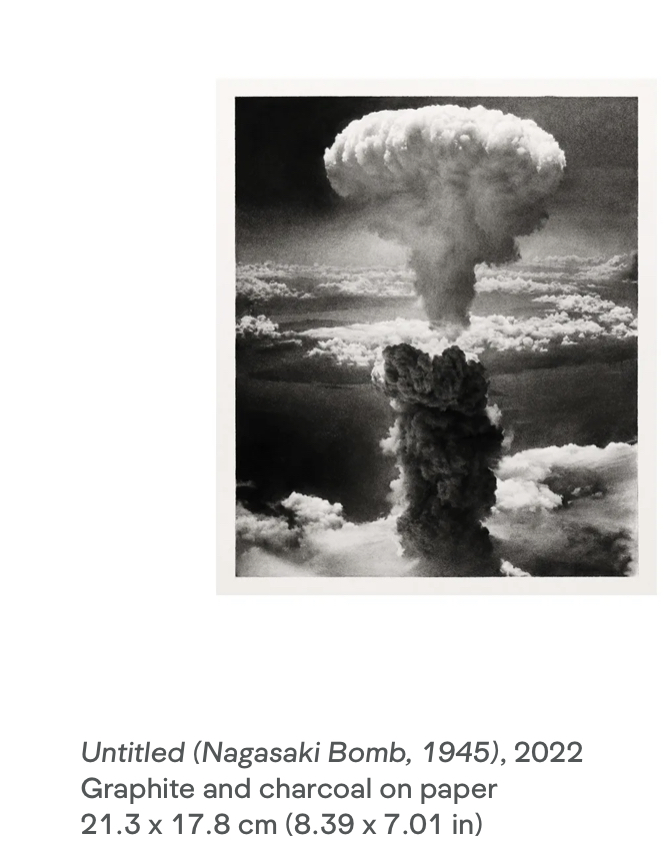 Robert Longo , nous présente , jusqu’au 7 dans sa série the new beyond de très grands formats au fusain . Un choc en entrant dans la galerie! On voit des tableaux europeens d’après guerre , connus , mais …en noir et blanc ! Il s’agit d’une réappropriation au fusain d’oeuvres de grands artistes , hommage décalé .Les petits formats sont la traduction de photos de cette période , qui évoquent des faits marquants de notre histoire contemporaine . Cette magnifique exposition occupe rez de chaussée , sous-sol ,et 2 ème étage .