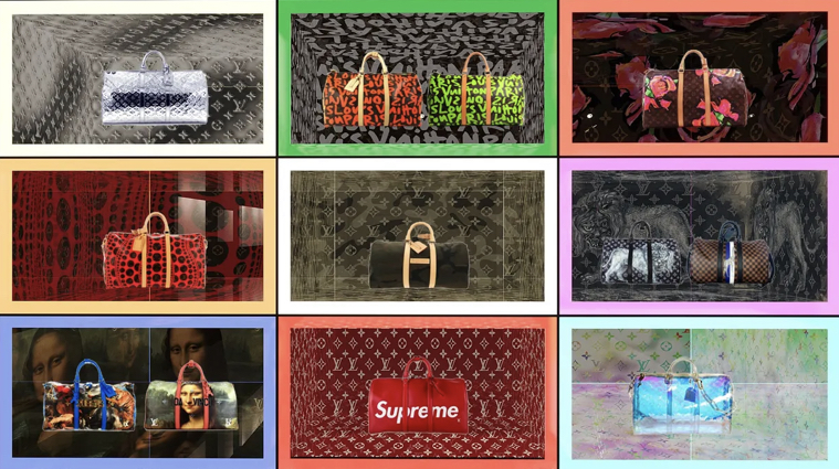 Les sacs, en collaboration avec Gregor Hildebrandt ,Murakami , Yayoi Kosuma, Rai Kawamoto ,Supreme ,Othoniel , et le sac banane à porter sur les fesses par Vivienne Westwood .