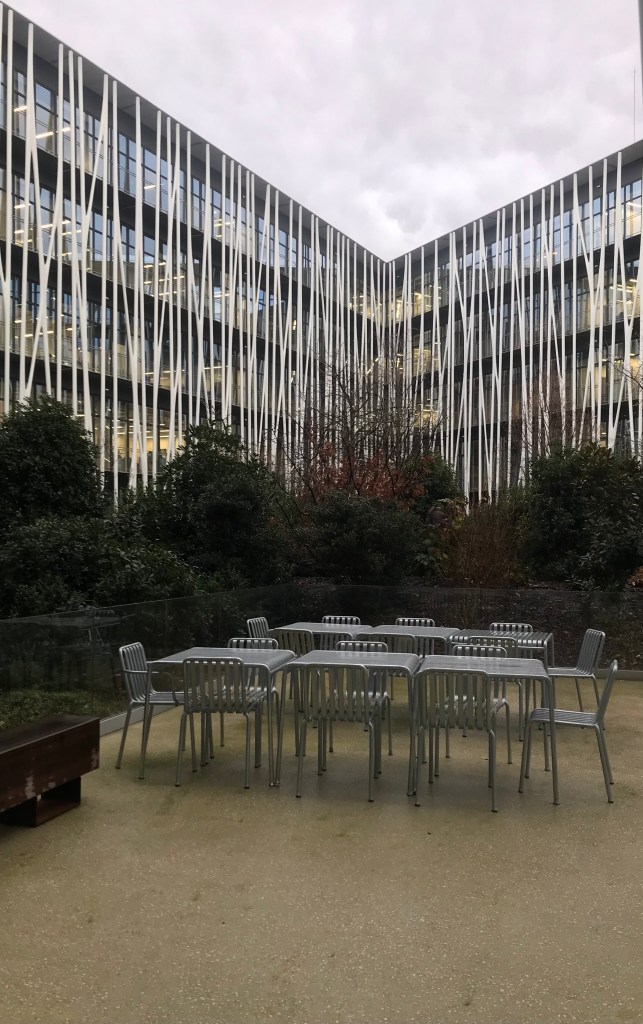 6 – tram jusqu’à la porte d’Aubervilliers , à la recherche du 2 place de Skanderberg , dans la 19eme . Pour que vous ne galeriez pas jusqu’à Aubervilliers comme moi , sachez que le superbe bâtiment de Rudy Ricciotti se voit de loin , sauf qu’il n’y a pas d’indications pour s’y rendre , fiez- vous à votre sens esthétique pour le repérer .