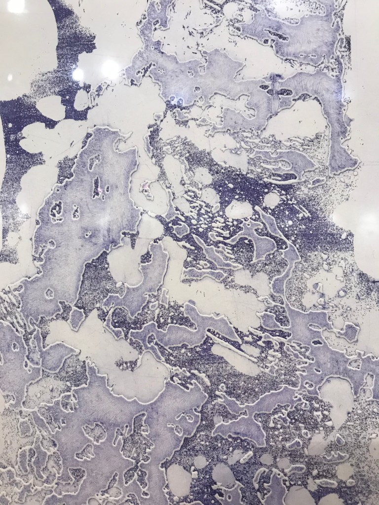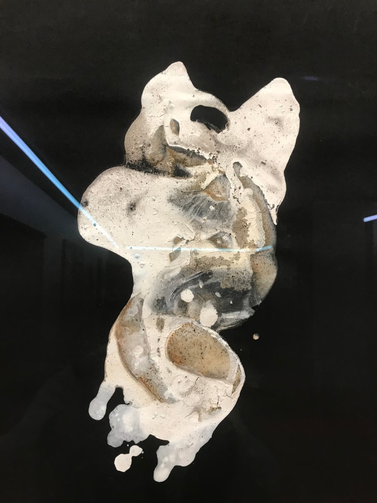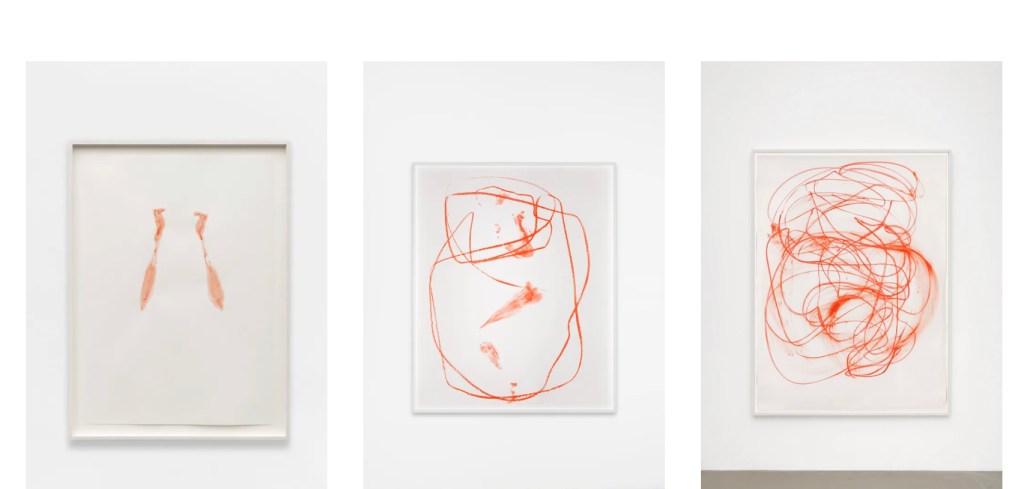 12 – En sortant on passe par la galerie Mitterand ,qui nous fait découvrir jusqu’au 6 mai le travail de la performeuse Katja Schenken , push the sky away , dont tout le travail est en rapport avec son corps( body prints )