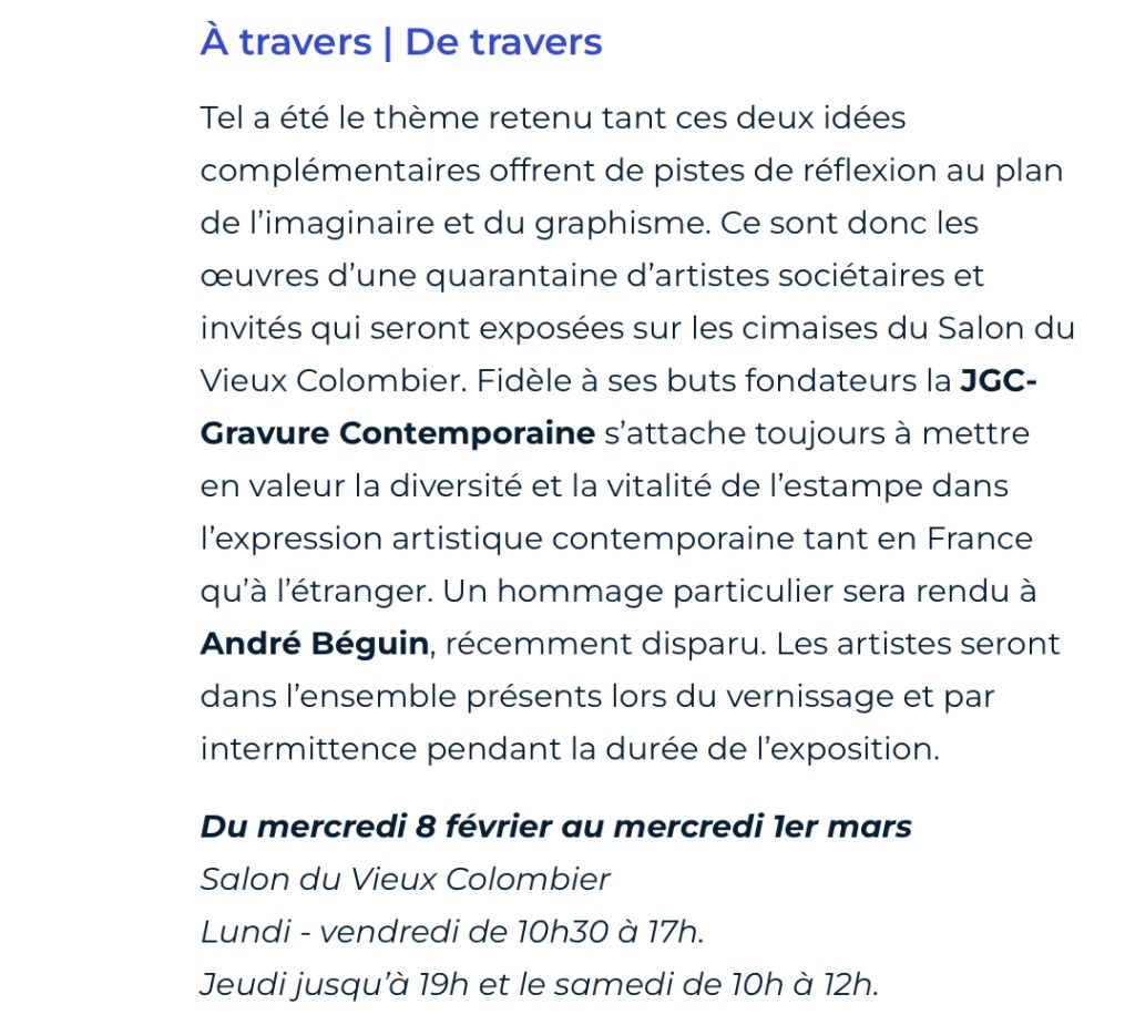 Le temps s’est écoulé , mystérieusement , rendez-vous médicaux, soucis, manifestations , voyage et nous voilà en avril , on a passé du temps dans de grandes expos temporaires , au drawing now, au salon du dessin, au salon approche , à la print fair ,à la Paris art fair , salons éphémères , alors on va se promener dans mon quartier , voir les plus grandes galeries .