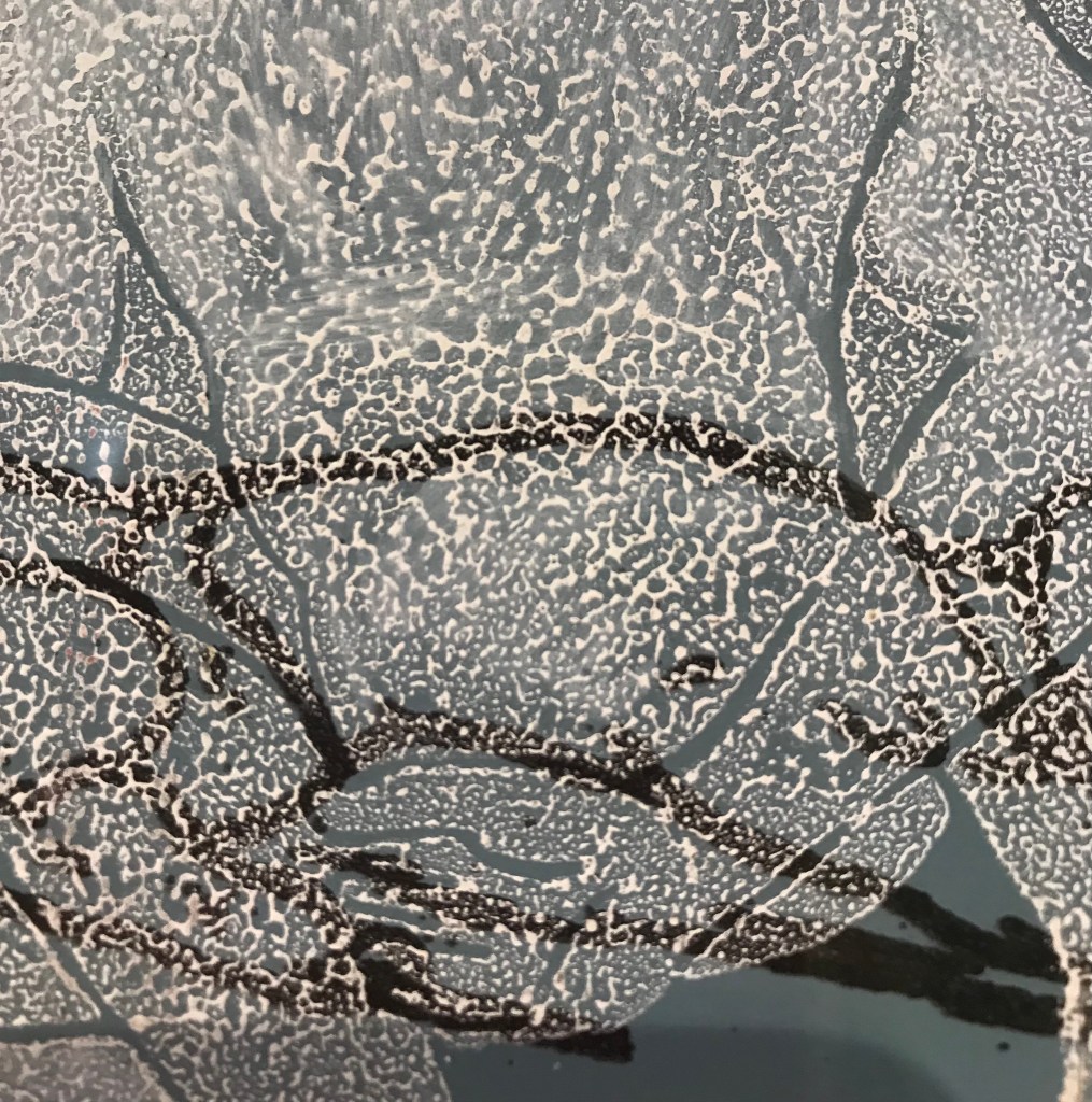 Bois gravé, eau forte , linographie , carton gravé, collages, fils ,pointe sèche ,estampe sur céramique , sérigraphie, gravure sur gomme ,burin, embossage ,carborundum, gravure photopolymere, linogravure sur photographie ,aquatinte , manière noire , estampe sur feutre et grès émaillé , lavis à l’acide ,voilà les techniques !
