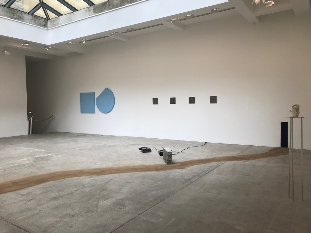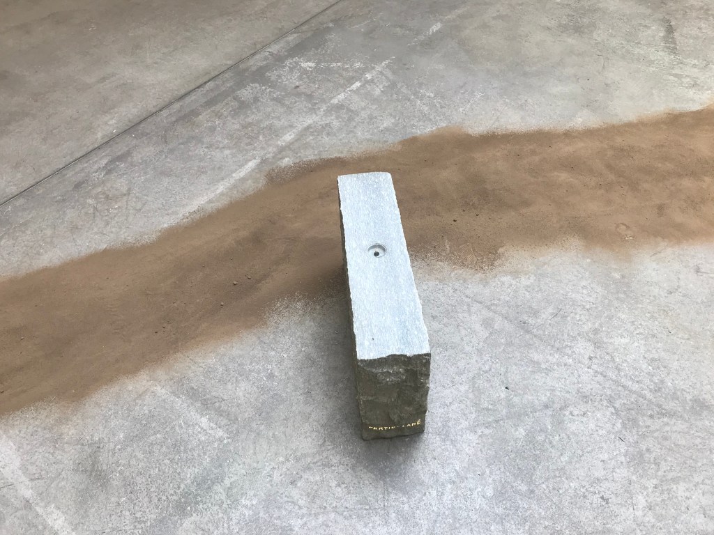 Dépouillement , concepts , oeuvres historiques comme il sentiero verso oltremare d’Anselmo , que vous voyez et qui circule entre deux bandes verticales outremer et où s’adjoint la boussole encastrée de direzione .