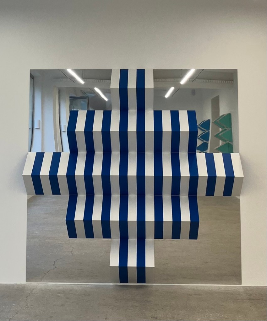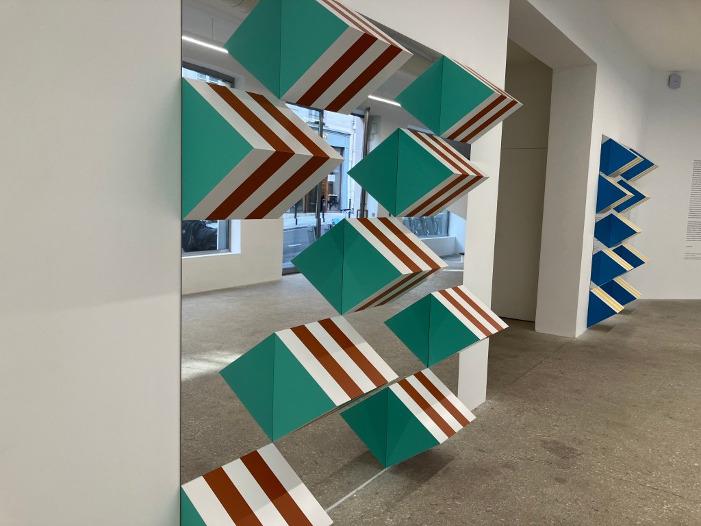 - Les deux galeries rue du pont de Lodi , sont consacrées à Daniel Buren, plis contre plans , hauts reliefs . Très belle surprise que ces oeuvres en relief, disposées frontalement , très bien présentées , espacées , avec des jeux de miroirs d’influence baroque .