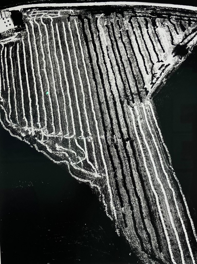 4- la galerie Polka , 12 rue saint Gilles , dans sa galerie de la belle cour de Venise , nous offre jusqu’au 28 octobre une très intéressante conversazione entre deux grands photographes italiens: Mario Giacomelli et Franco Fontana . Deux amateurs de paysages , très graphiques , l’un né en 1925 ne travaillant qu’en noir et blanc , avec des prises souvent faites d’avion et l’autre , son cadet de dix ans s’exprimant par la couleur .