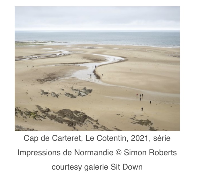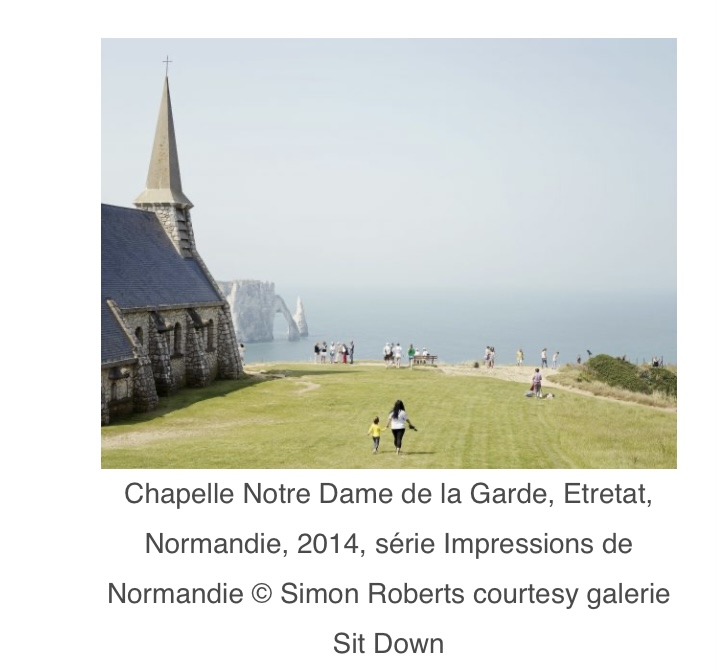 2 – Jusqu’au 23 octobre , la galerie Sit down , 4 rue sainte Anastase , spécialiste de la photo contemporaine anglaise , nous fait découvrir un photographe célèbre dans son pays Simon Roberts, dont un air de vacances présente des photos de ses 2 résidences d’artiste en Normandie . Il est animé par la représentation bienveillante des territoires et de leurs occupants même d’un moment , de leurs activités et répartitions dans le paysage .