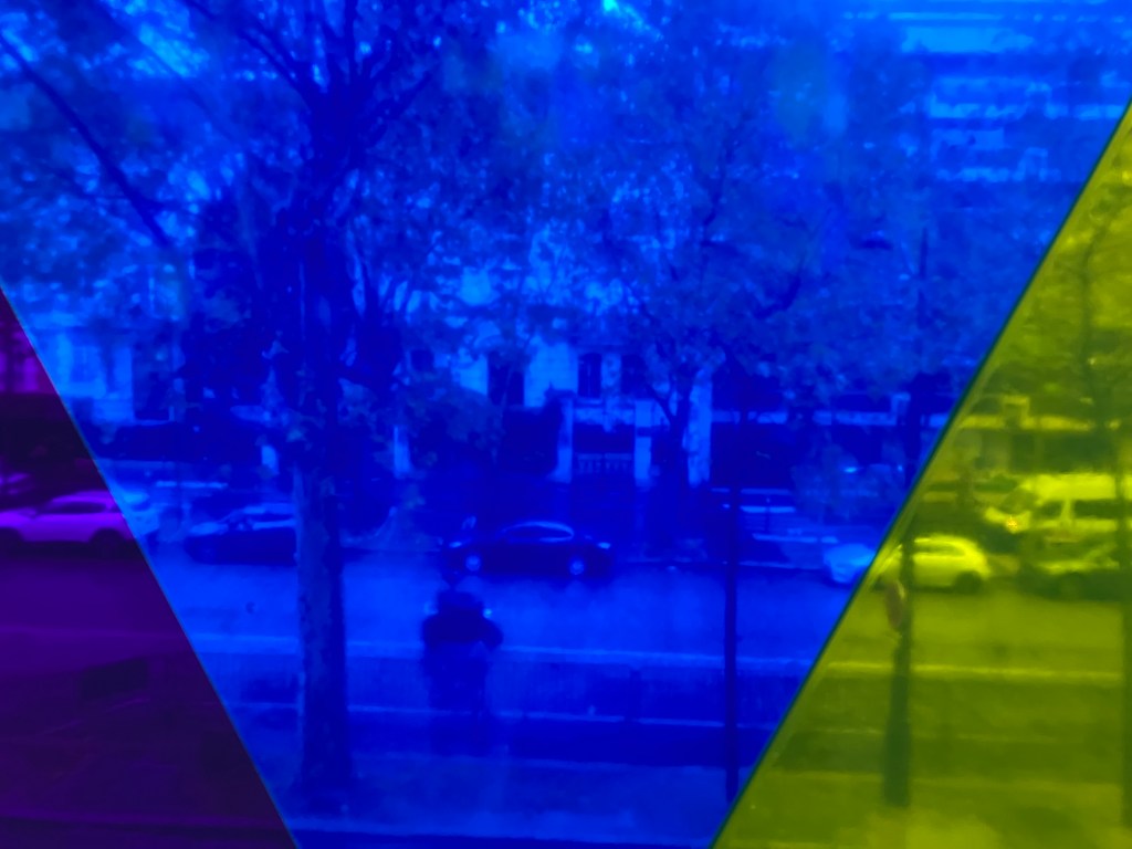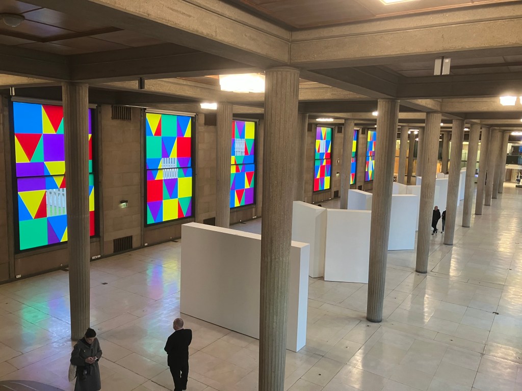 Buren : allegro non troppo , travail in situ , films géométriques colorés sur les baies du bâtiment d’Auguste Perret .