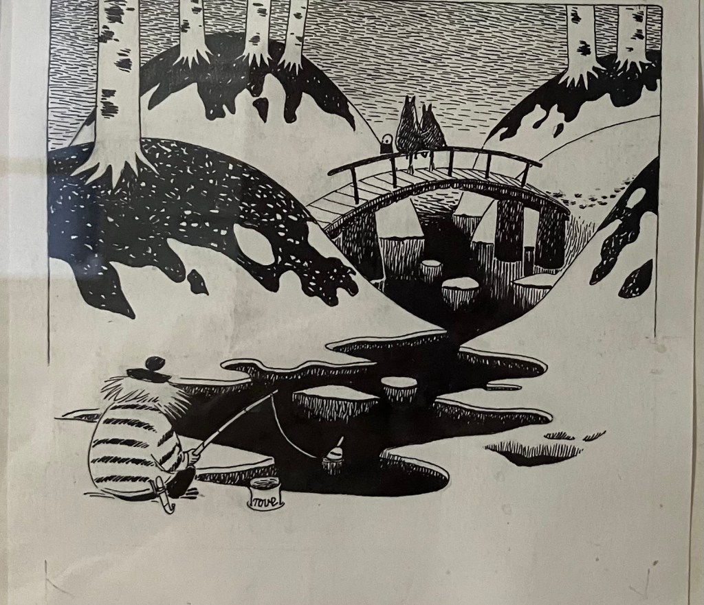 -3 l’expo Tove Jansson , impasse de Mont-Louis . Cette illustratrice finlandaise (1904-2001) a ses fans , je m’en étais rendue compte a Helsinki , avec tous les produits dérivés , évoquant les Moomins. Ici peintures , dessins , on sort de l’univers des petits hippopotames .Rien ne me prédisposait à venir ici , si ce n’est le choix d’une amie anglais qui a travaillé ainsi que son mari sur l’adaptation des Moomins en petites séries de dessins animés. Peu de visiteurs , mais fervents admirateurs , un coté secte .