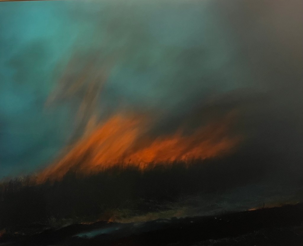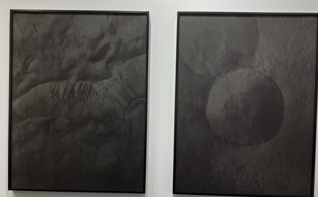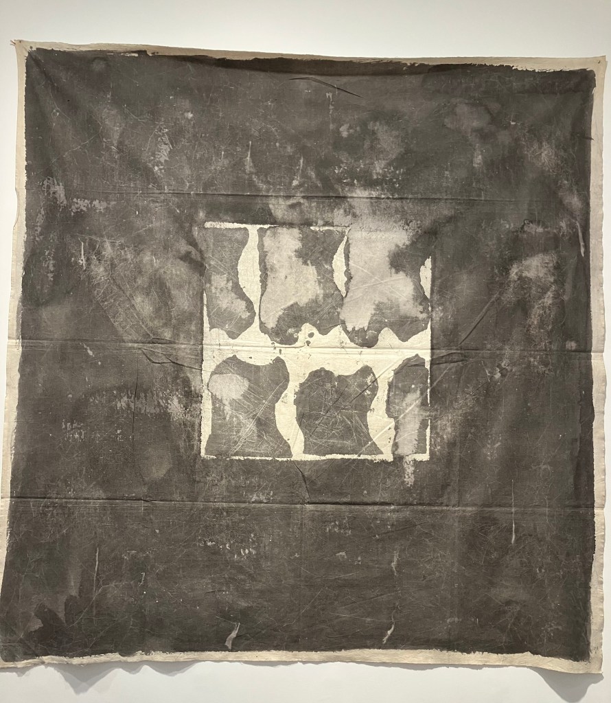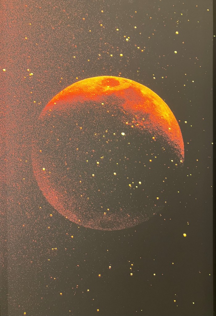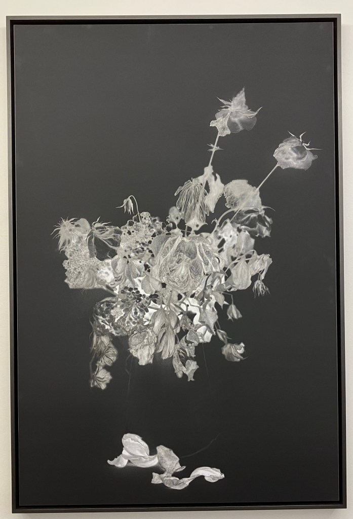 la première oeuvre qui nous accueille est paradoxalement dans les gris , sur une grosse toile , et avec un cadrage surprenant