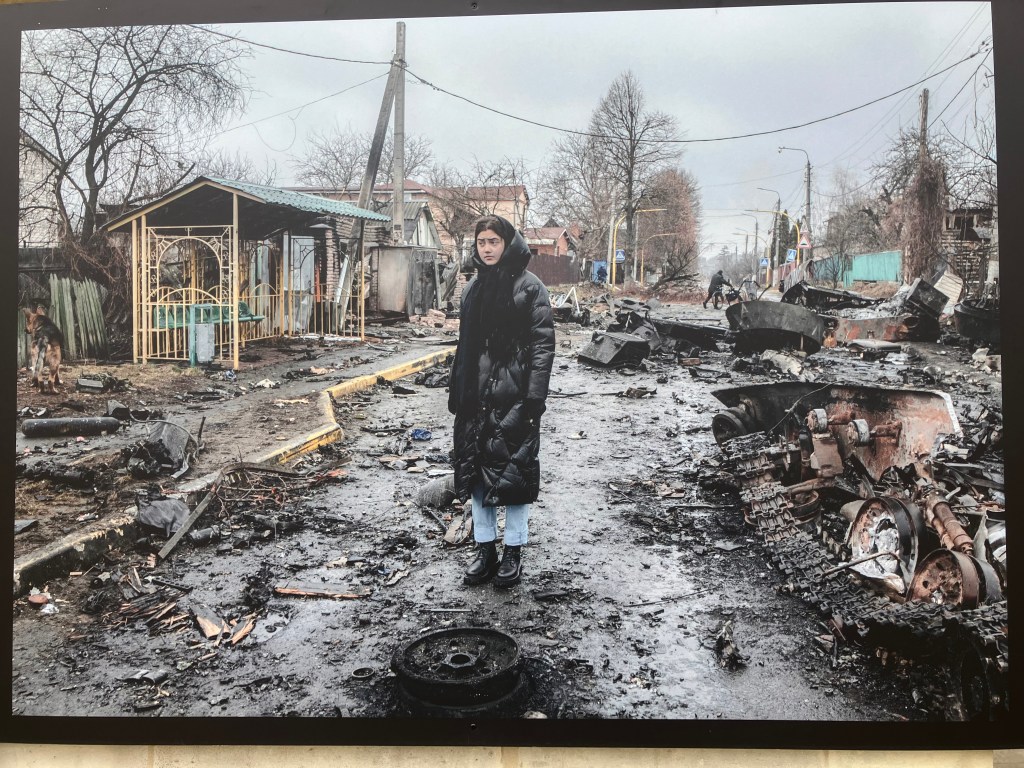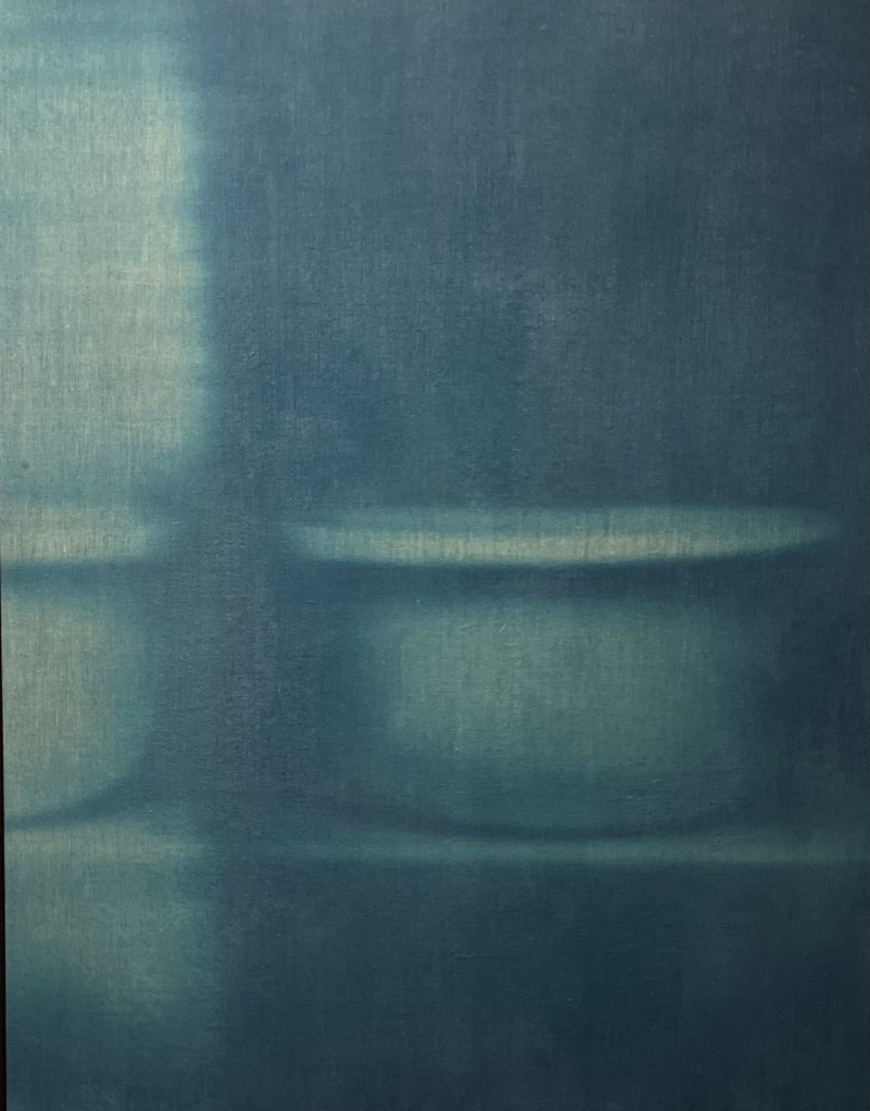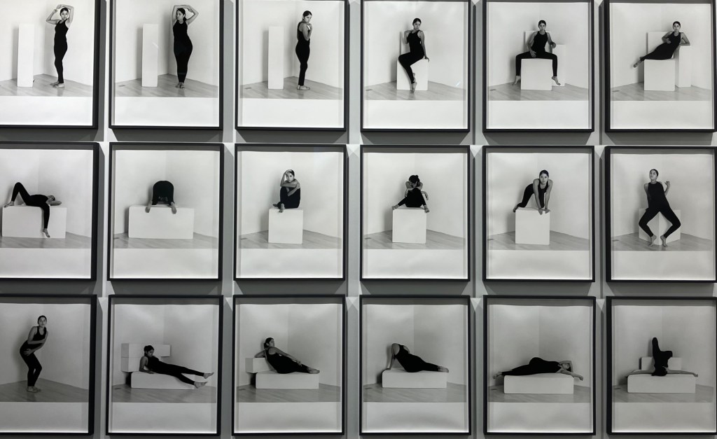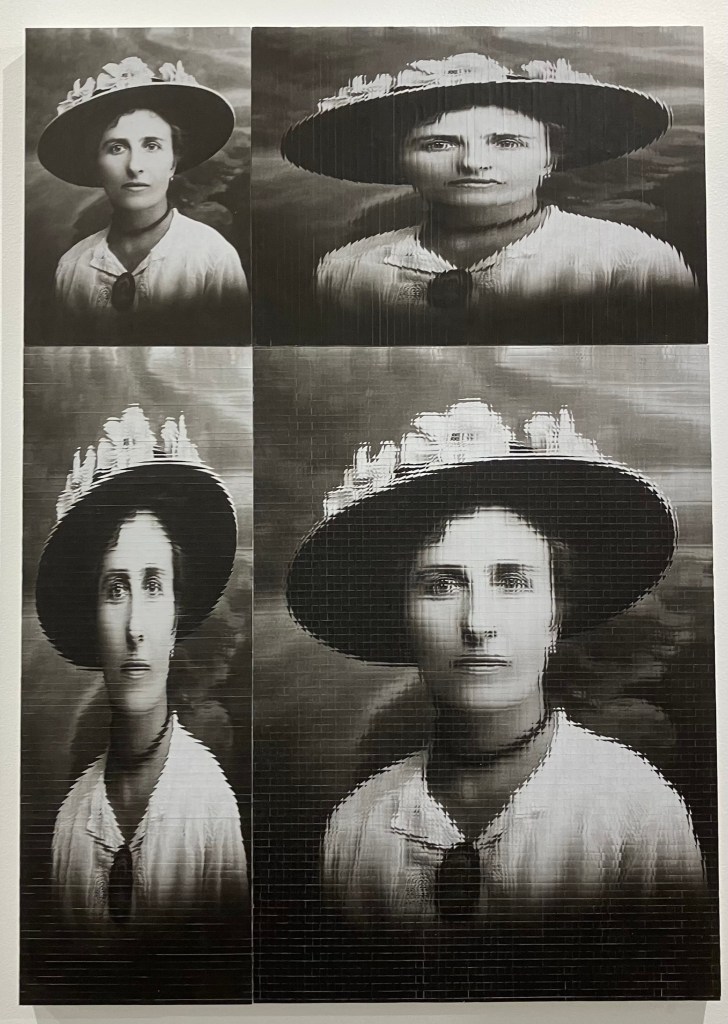 la première oeuvre qui nous accueille est paradoxalement dans les gris , sur une grosse toile , et avec un cadrage surprenant