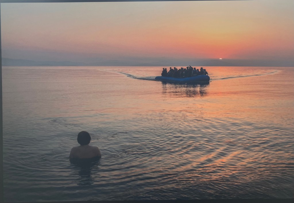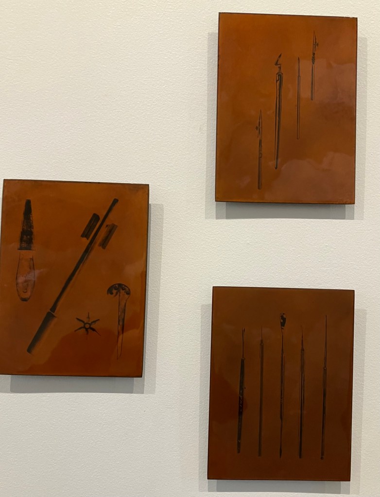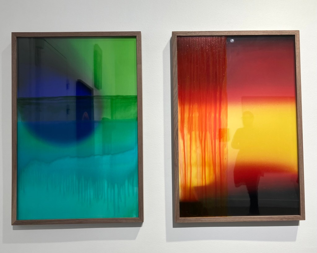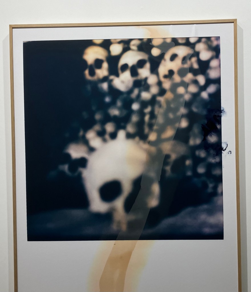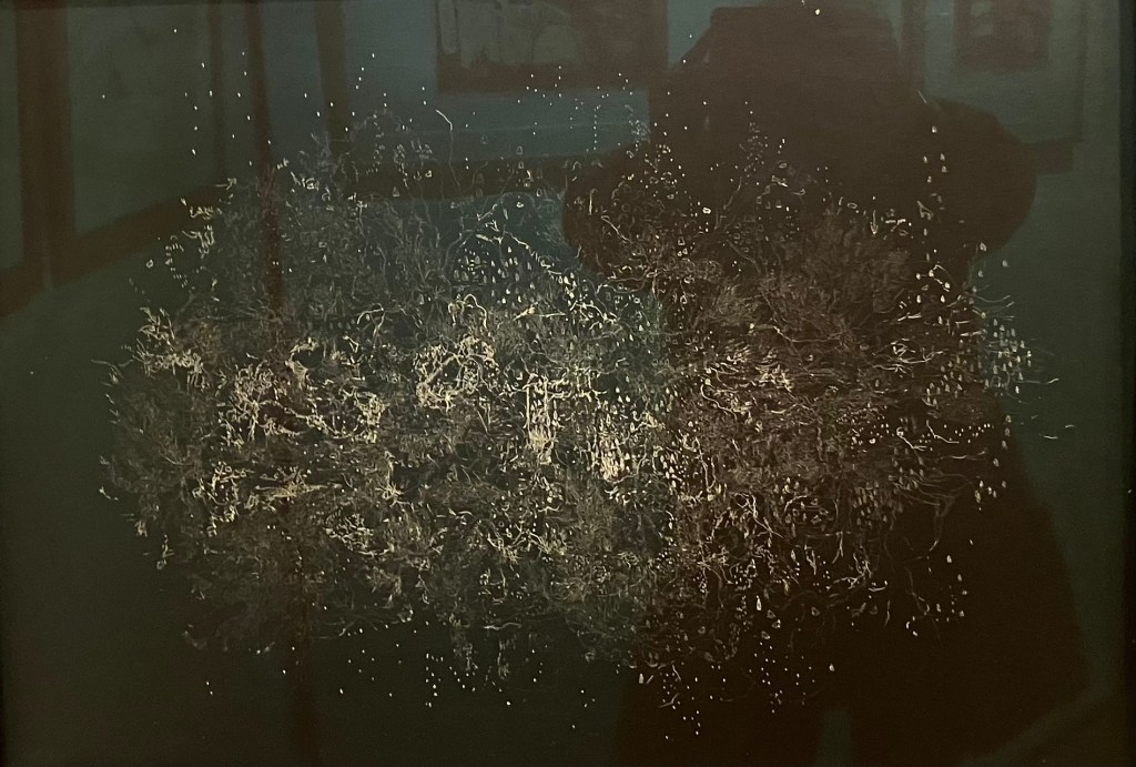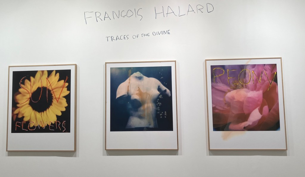 Le photographe est là et explique sa démarche , faire des polaroïds ( matériel professionnel ) , surtout des nus féminins , en déposant la pate sur des feuilles d’or , ce qui rend la matière précieuse, chatoyante . Pour les anciens Polaroïds qu’il avait déchirés , il les renconstitue à la japonaise , fil d’or, pièces uniques .
