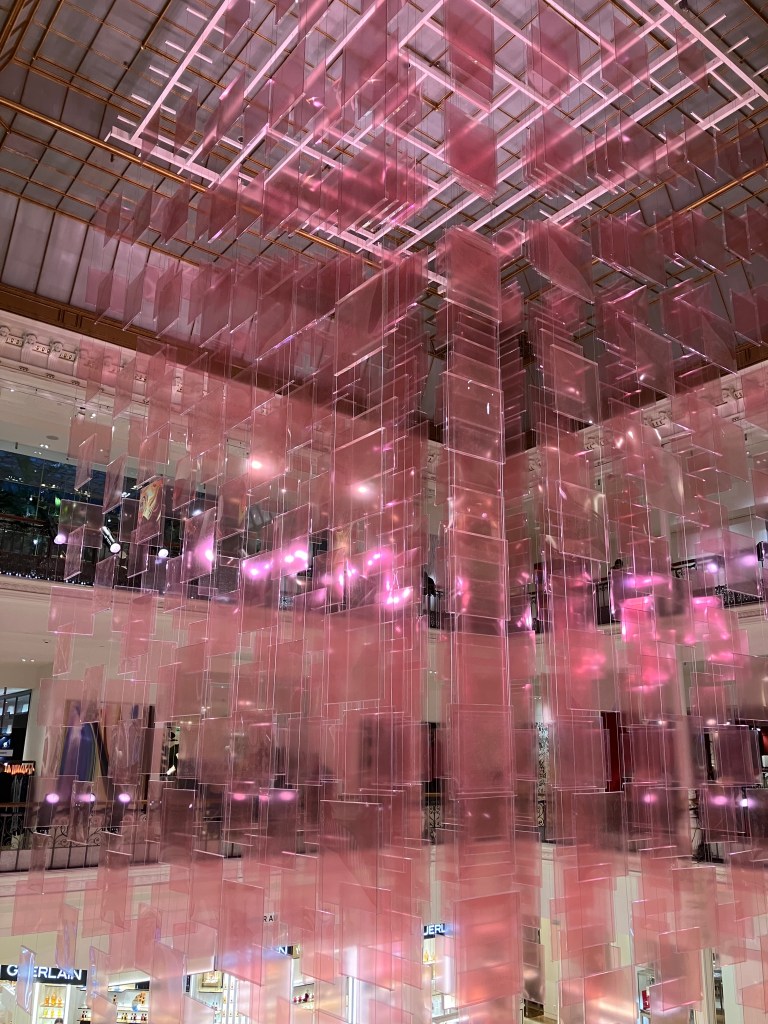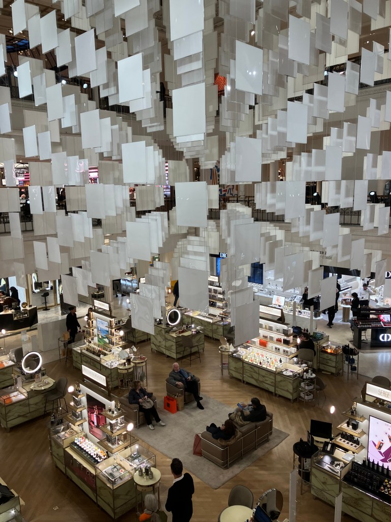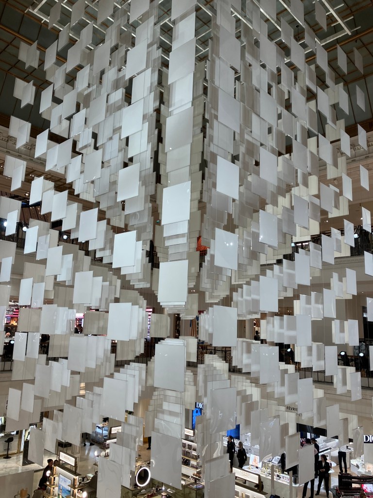 les carrés de 50 cm, s’inspirent des carreaux des verrières centrales du Bon Marché .