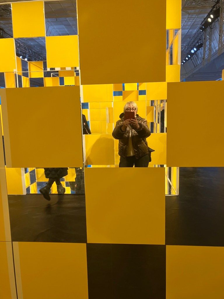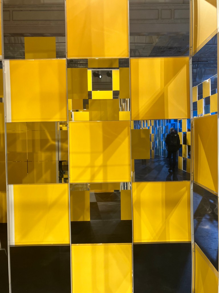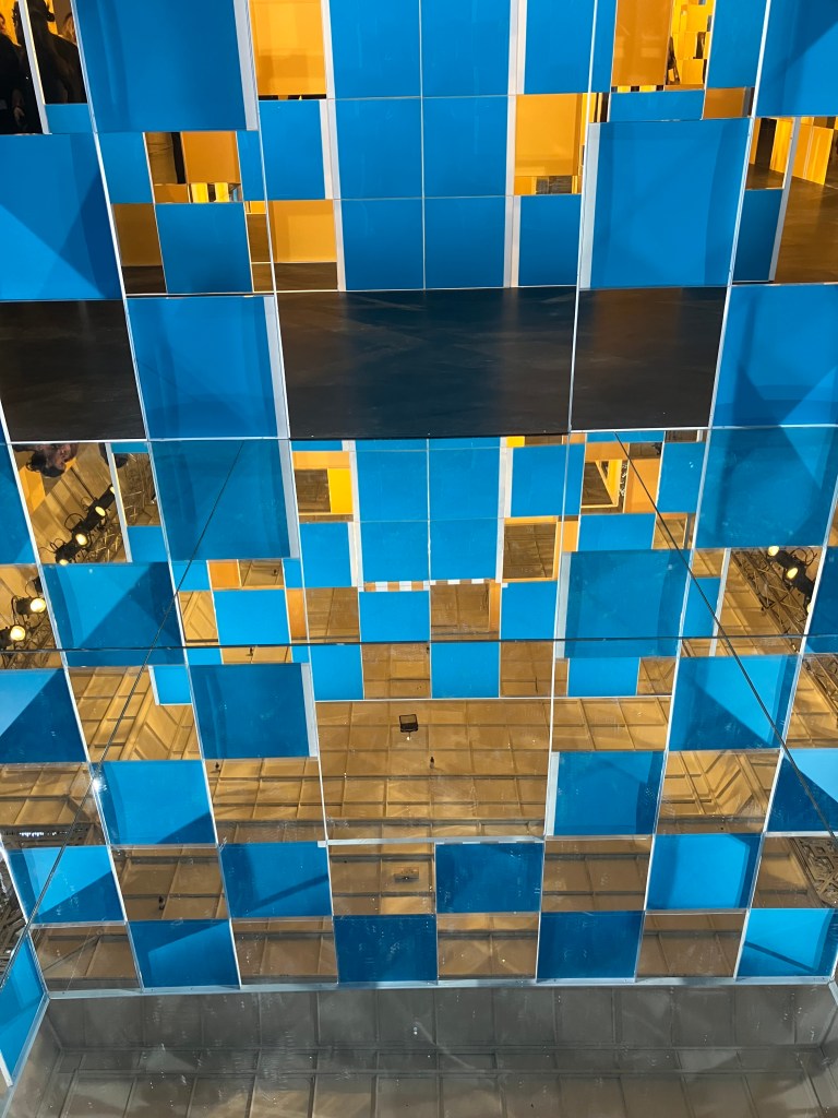 Les carrés absents se retrouvent projetés sur les murs recouverts de miroirs.
