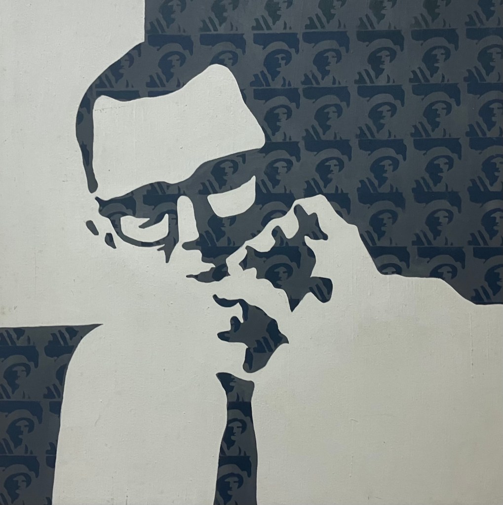 On reconnaît bien son univers poétique, engagé et humoristique, ses rébus philosophiques , ici il rend hommage à de grands hommes et à des musiciens , mais pas que ! ( srface inconnue )