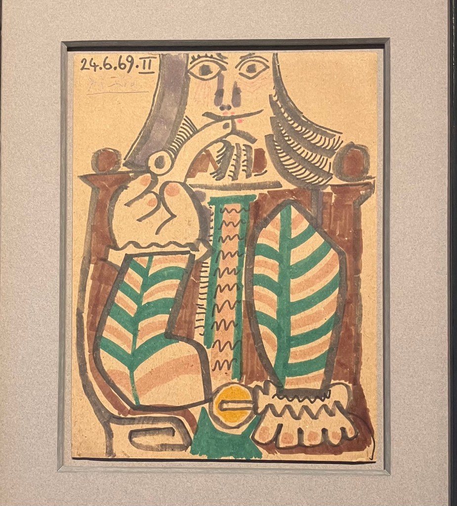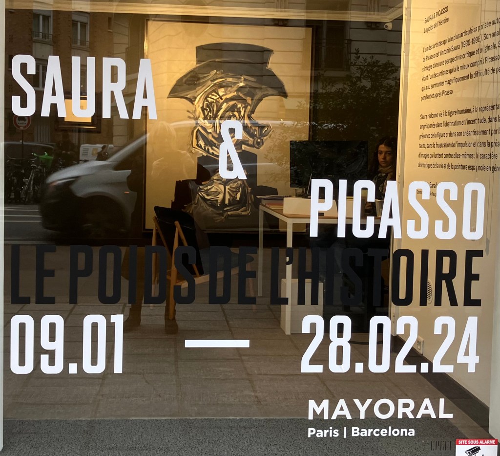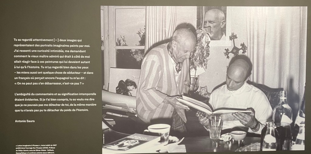 6 oeuvres exposées, conçues entre 1939 et 1985 . 3 sont de Picasso et les autres de Saura, qui a beaucoup écrit sur Picasso , l’a rencontré et s’est permis de nombreux hommages .