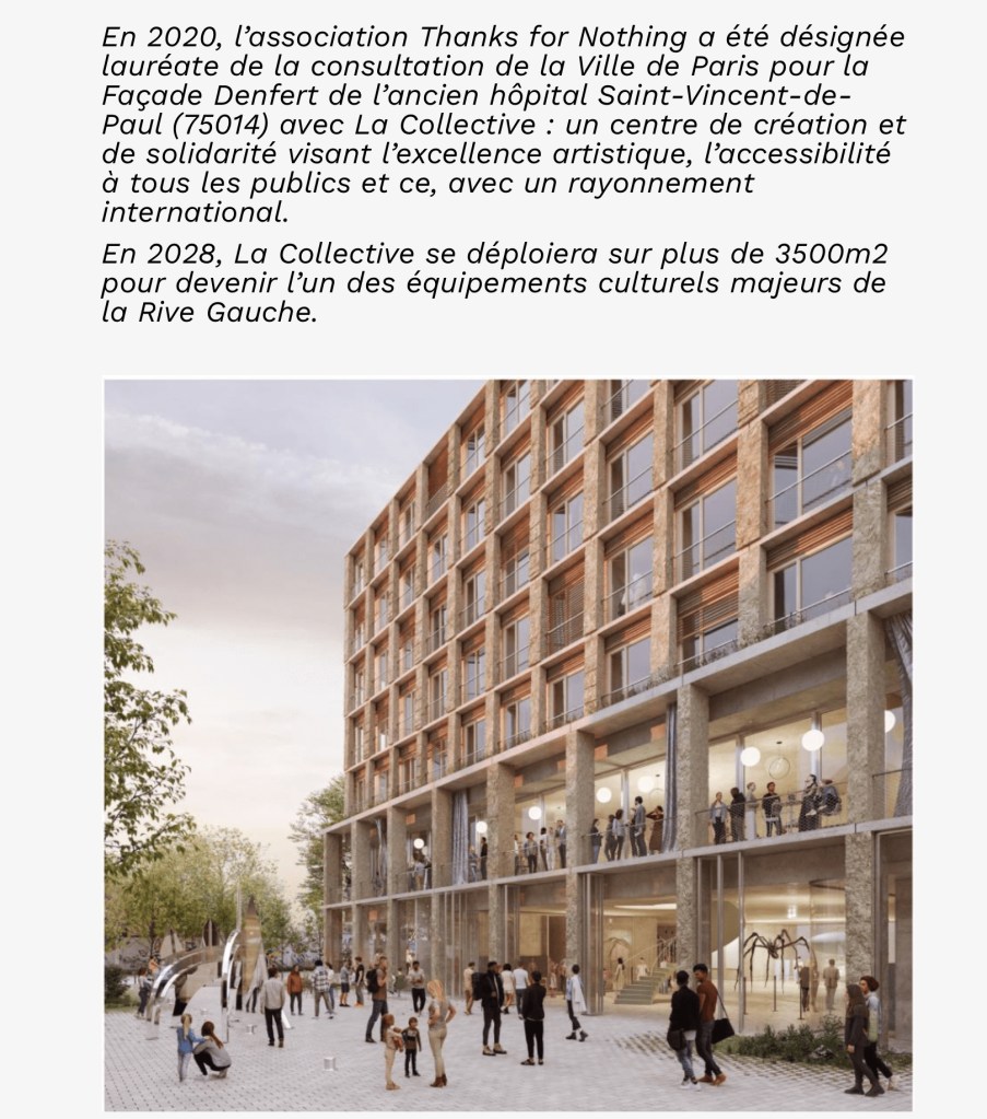 ce collectif sera à partir de 2028 ( prévision optimiste) aux ex Grands Voisins , dans l’ex hôpital Saint vincent de Paul . En attendant , voici une premiere préfiguration de sa programmation , centrée cette fois-ci sur l’Amérique latine .