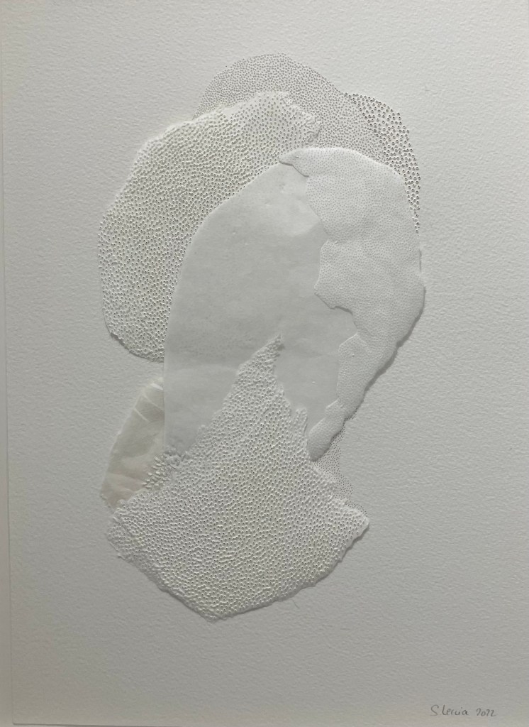 Ce sont donc les résultats de recherches approfondies et originales sur supports et techniques que nous présentent ces photographies . Broderies , utilisation de l’IA , procédés de tirages du XIX ème ( Talbot) , tirages au sel ,tirages différents d’une même vue avec matérialités différentes .Passionnés de photo , allez consulter le site ou la galeriste !