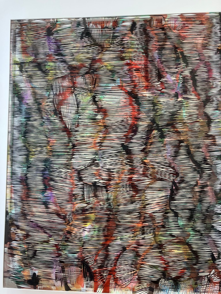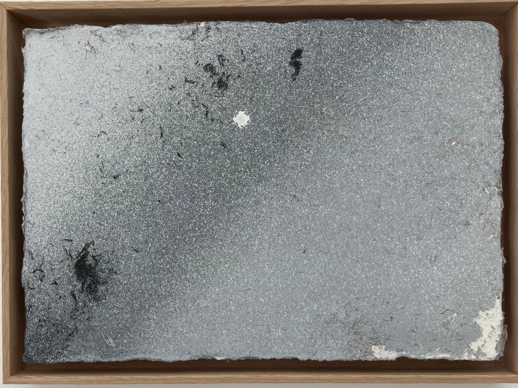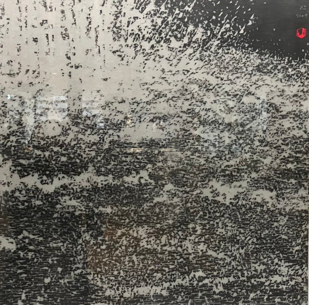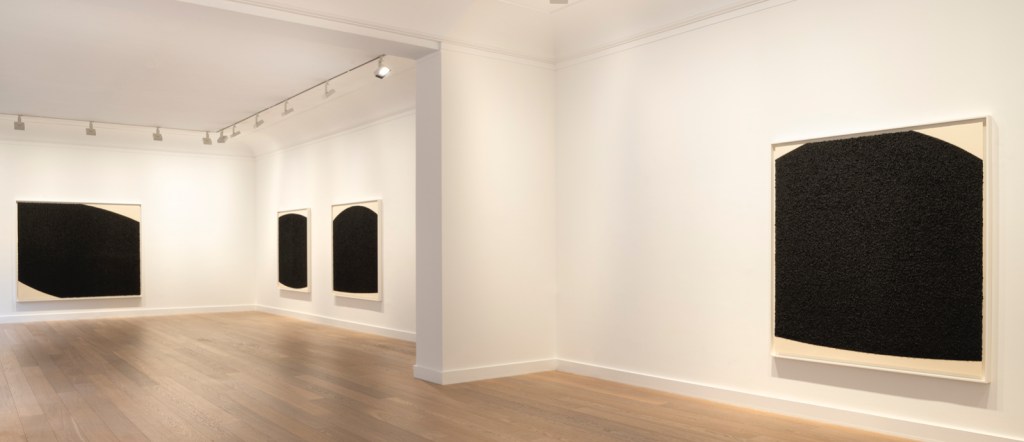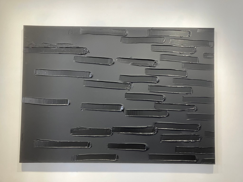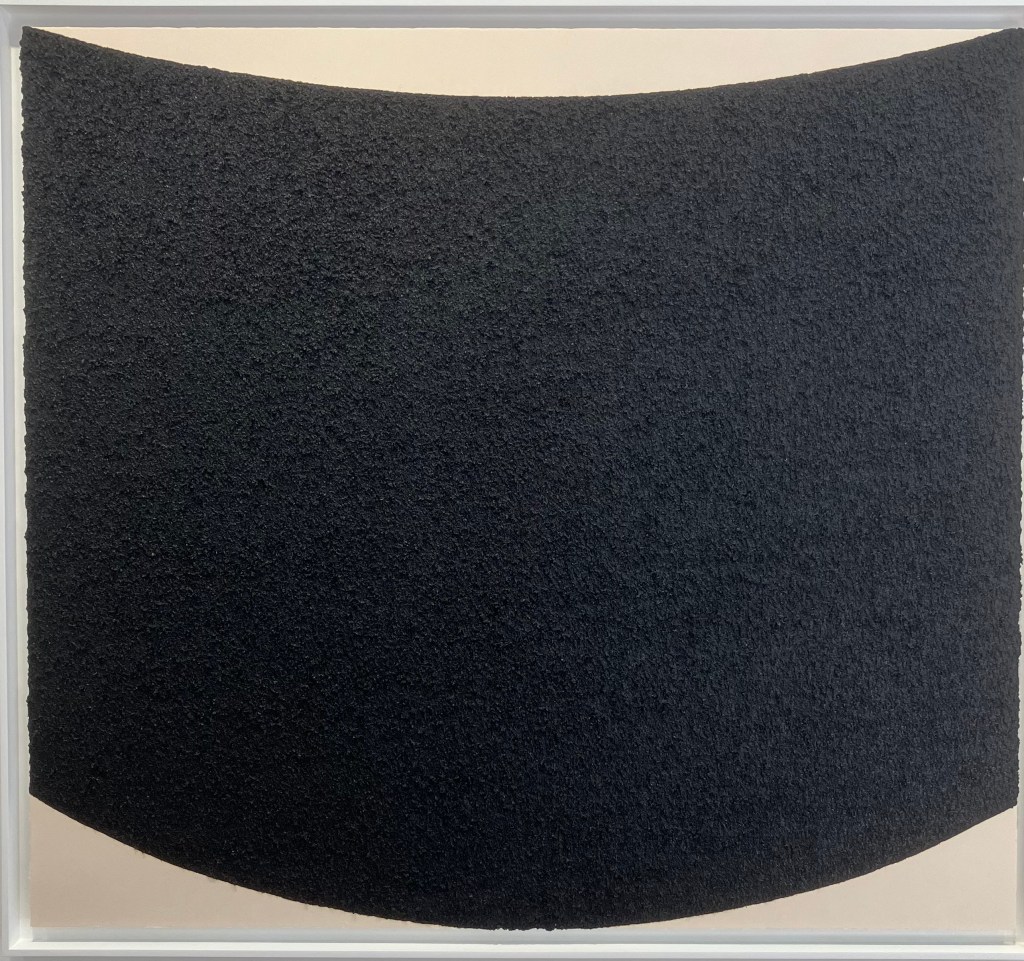 Donc encre à l’huile appliquée à la main , et silice , un beau noir plein de matière .Projet travaillé dès 2020, montré à Paris pour la première fois Et dans la salle à côté des gravures .