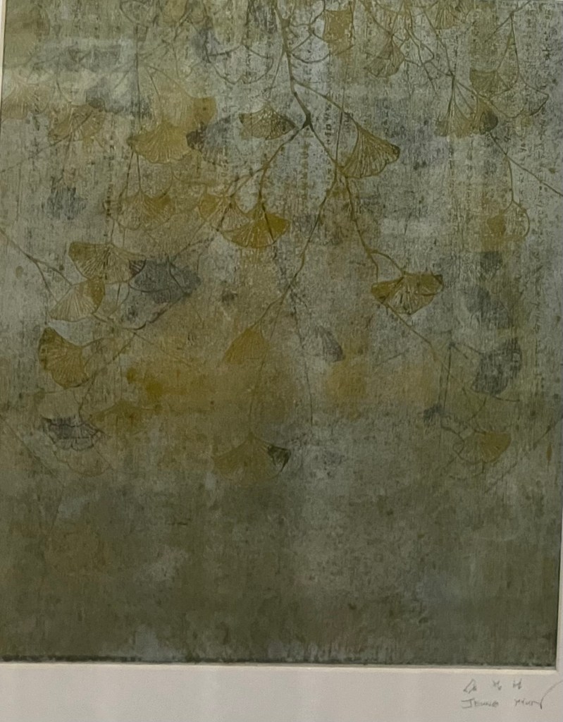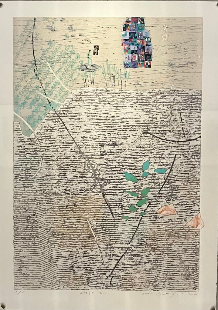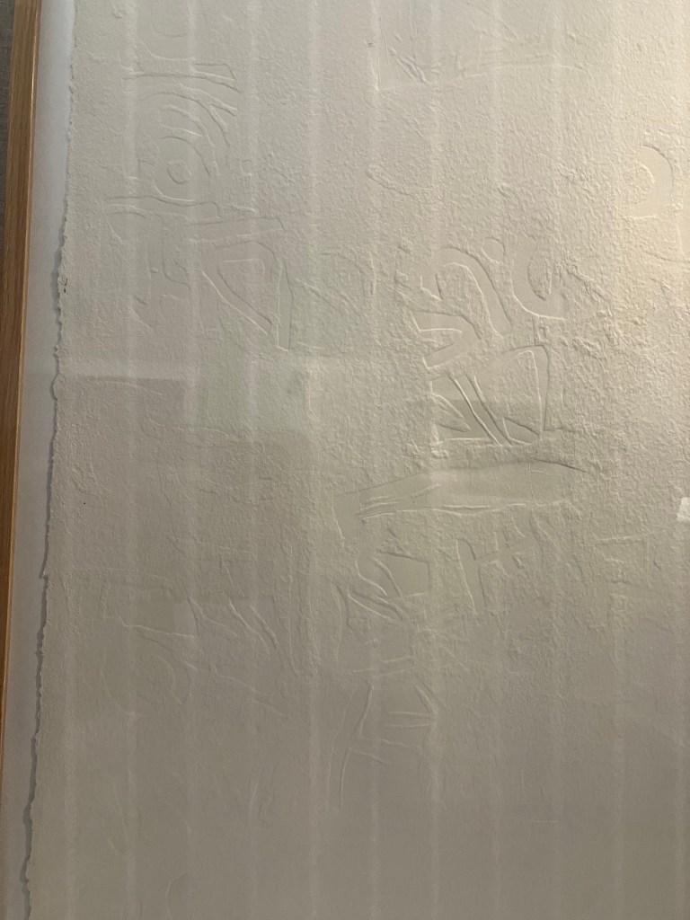 Gravures coréennes contemporaines , présentées par roulement par six .Finesse , délicatesse ,du gaufrage à la gravure sur bois .