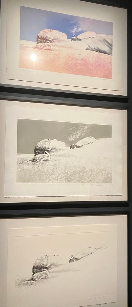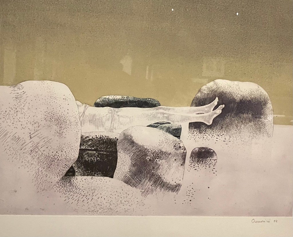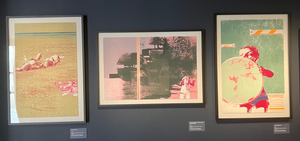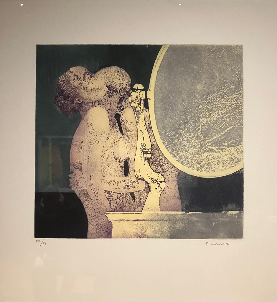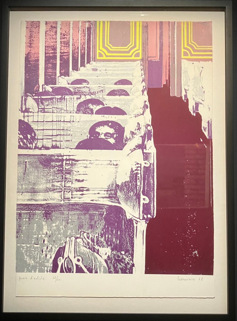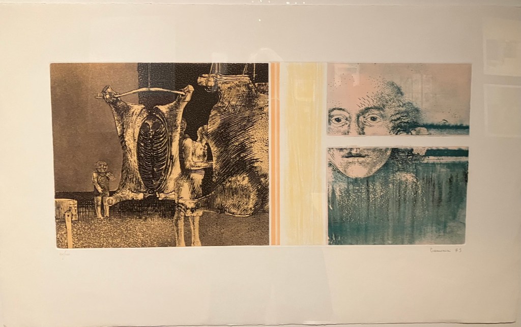 A l’intérieur sont exposées jusqu’au 29 mai , des estampes ( legs fait à l’école des Beaux Arts ) , sérigraphies , lithographies , eaux fortes .