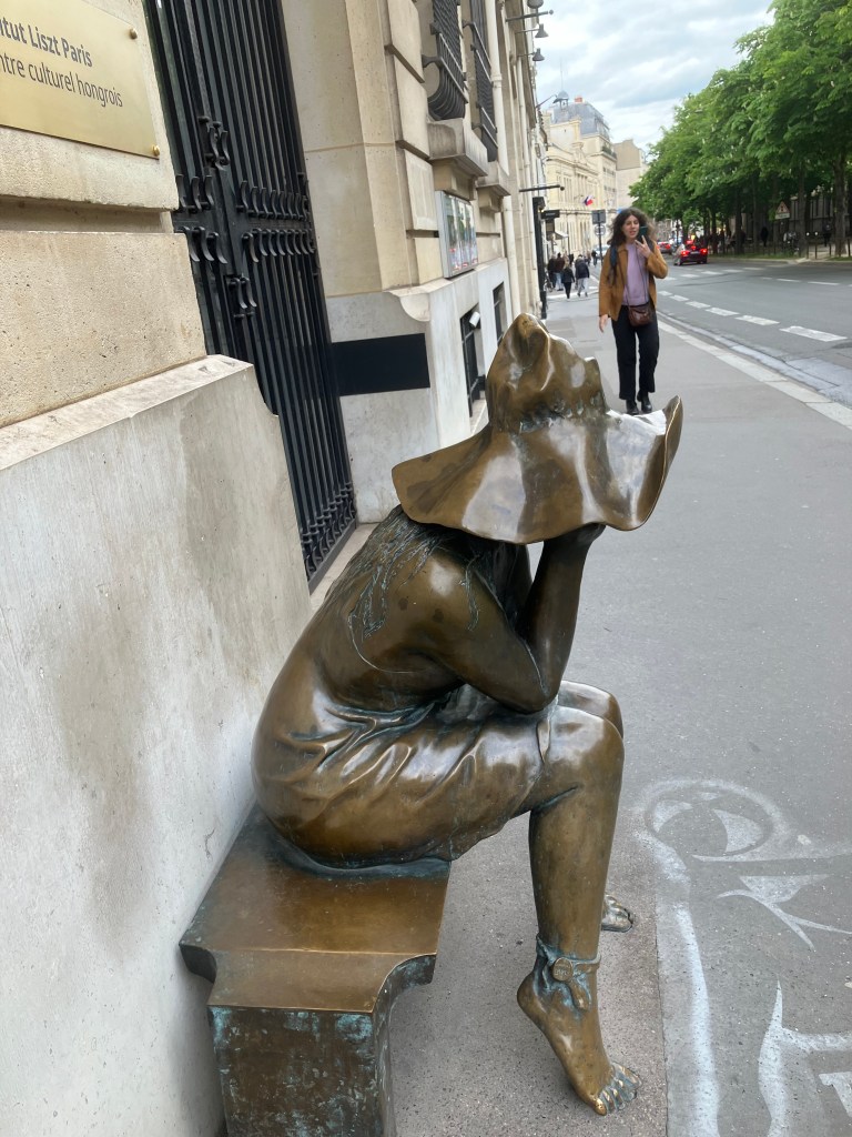 et cette rêveuse en bronze d’Andras Lapis . devant l’institut hongrois ,92 rue Bonaparte .