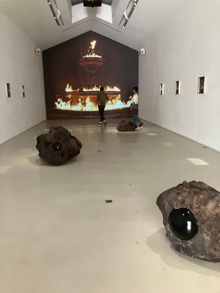 8 Chez Perrotin , impasse saint Claude , jusqu’au 1 juin travail très intriguant de Julian Charrière, sous forme de sculptures , video, grotte , héliographie sur acier , peintures, roches volcaniques , réflexion sur les éléments naturels , l’eau , le feu , et leur transformation symbolique .