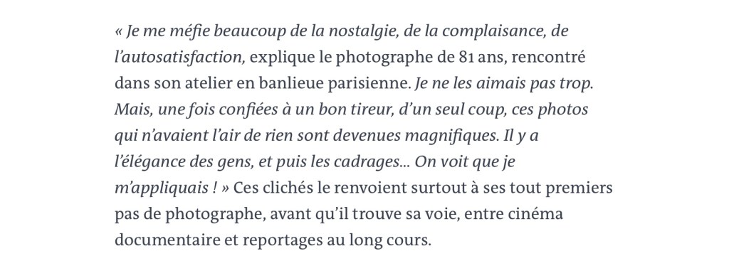 Nous le connaissons très bien , comme créateur de l’agence Gamma , comme membre de l’agence Magnum , pour ses reportages photographiques sur l’asile psychiatrique de San Clemente , sur la France ( en 1998 il parcourt laFrance en camping-car , puis il traverse 65 départements en cinq ans ,en cumulant des prises de vue à l’aide de deux chambres grand format ), ses photos de l’été 81 à New York pour Libération , sa série Errance , sa prose , ses films .On a tous vu ( ok ça dépend de notre âge! ) ses grandes expositions : la France de Raymond Depardon , un moment si doux , traverser . On a aussi en tête ses portraits d’hommes politiques , et son goût pour le paysage rural et urbain , son empathie .