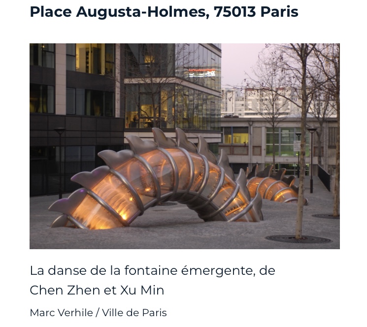 4 Je poursuis ma recherche sur la sculpture contemporaine dans l’espace public à Paris , pour l’instant sous forme d’énumération , et qui deviendra peut- être une réflexion plus approfondie , qui sait ?