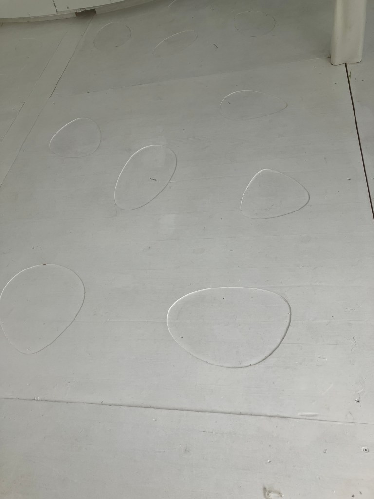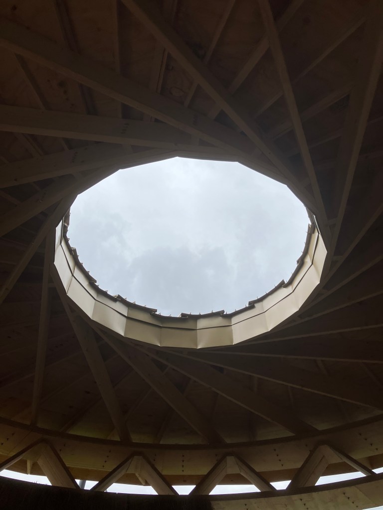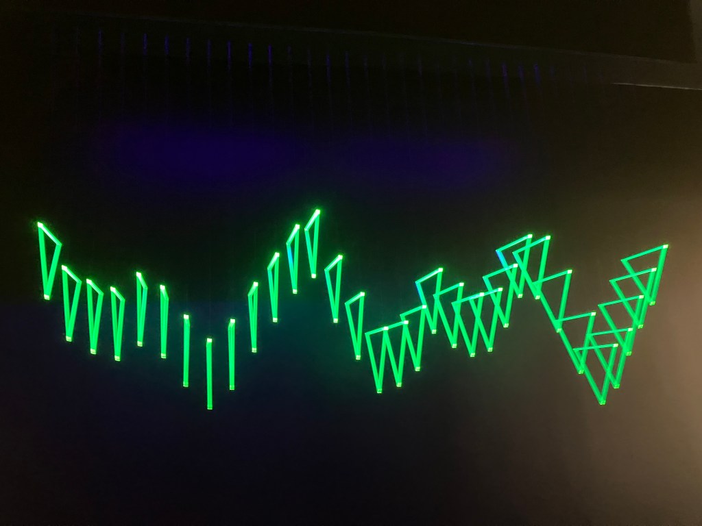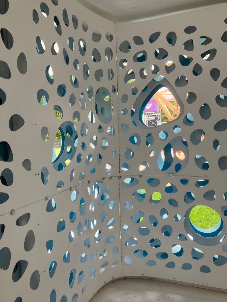 Plein de formes , beaucoup de cercles , mais aussi des jeux de triangles , de cubes , des évocations de bateaux , de l’eau , de raquettes , un mur d’escalade .