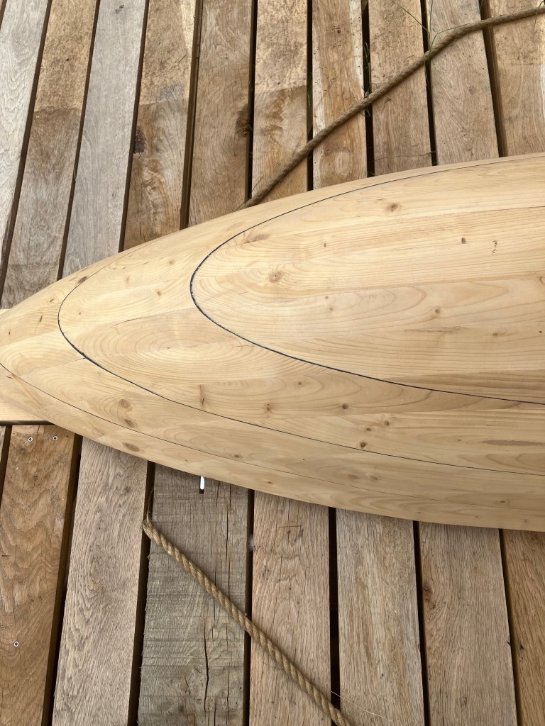 Matériaux? Surtout du bois , beaucoup de bambou , mais aussi de la paille , des voiles recyclées , du lycra , du métal , de la pierre volcanique pour l’école de Clermont -Ferrand , du carbone ,du liège .