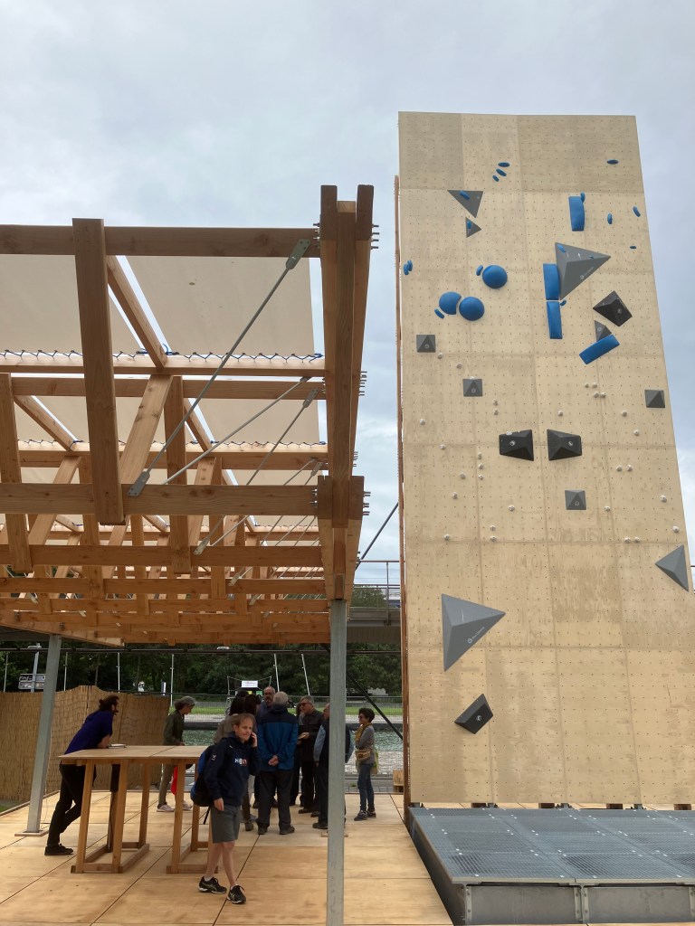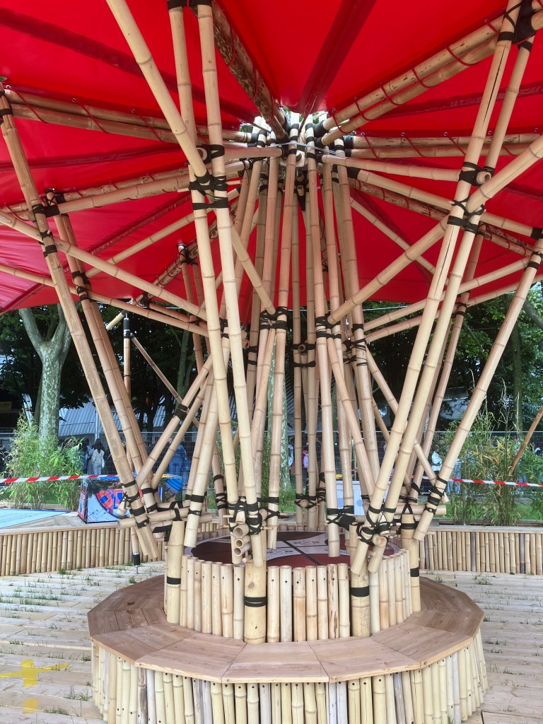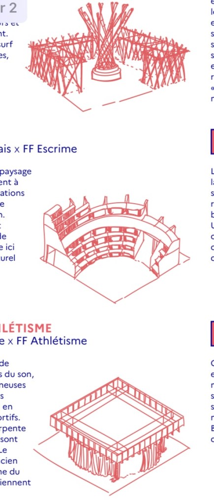 Il est rare que ce blog , qui pourtant l’adore , aborde l’architecture .Ici une belle occasion nous est offerte : 20 écoles d’architecture française ont réalisé chacune un pavillon dédié à une fédération sportive , en utilisant des matériaux locaux, biosourcés,recyclables , en respectant le même cahier des charges ( 3 hauteurs possibles , surface ) et en faisant montre d’imagination, de compétences et de sens du timing ( montage en neuf jours ) .12 pavillons sur une ligne le long du canal entre les folies rouges de Bernard Tshumi , et 8 autres , sur une autre ligne .