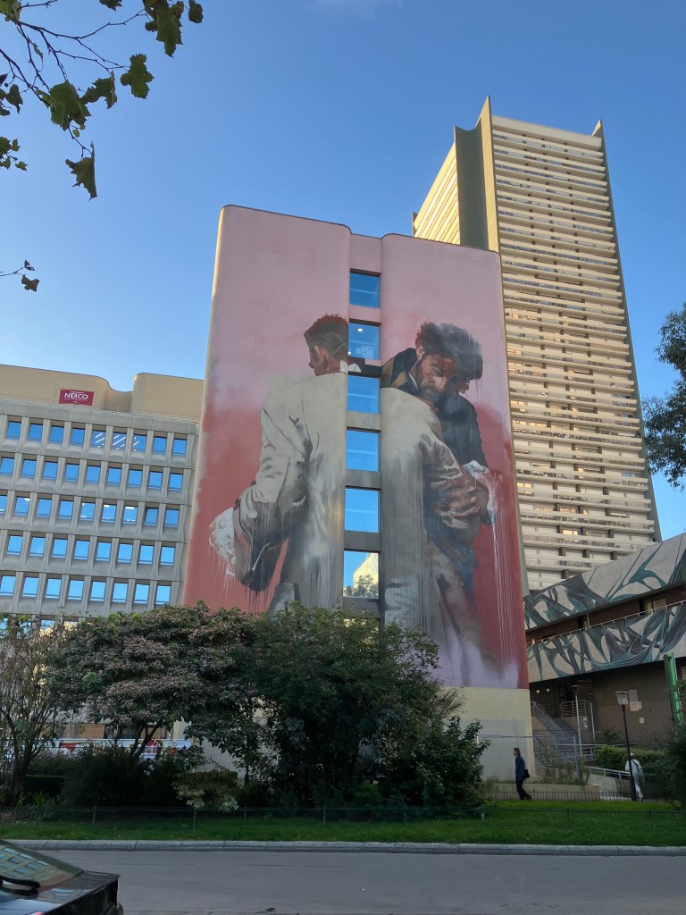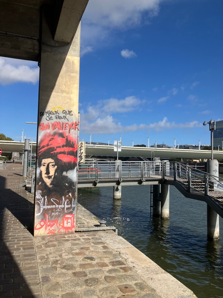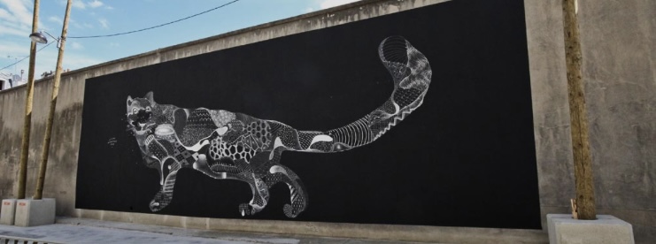 Moi je l’ai découvert à l’inauguration de la médiathèque Françoise Sagan , pour sa fresque extérieure de 17 m sur 6 ,constellation à visage animal , celui de la panthère des neiges .