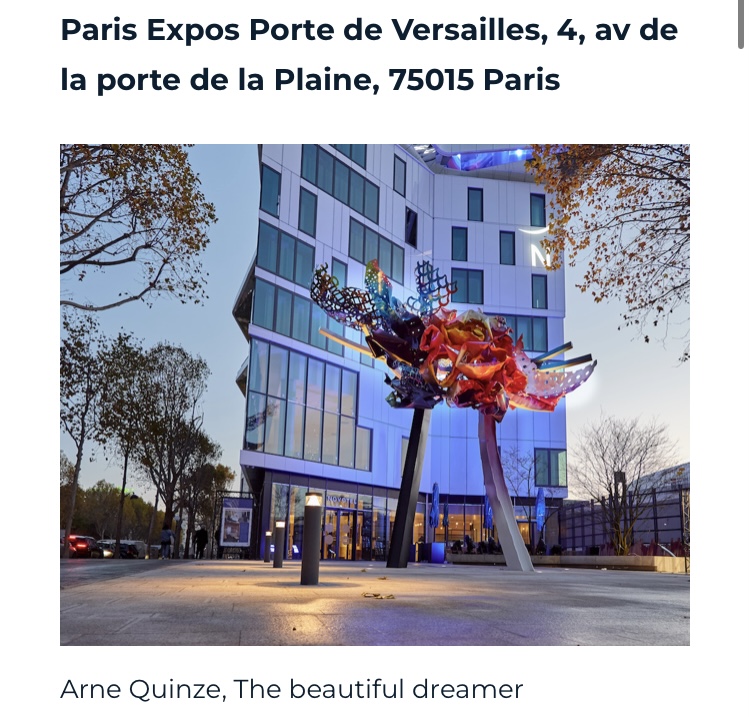 Bon mois d’Octobre ! dans quelques jours des galeries rouvriront avec d’autres expositions , vous pourrez aller à La Biennale de Lyon ou au Grand Garage Haussman du 16 au 20 0ctobre ( reservation only ) , et a Art Basel Paris les 18 , 19 ou 20 octobre , au Grand Palais rénové ,mais au prix de 44 euros .Je me permets de rappeler que ce salon expose aussi gratuitement