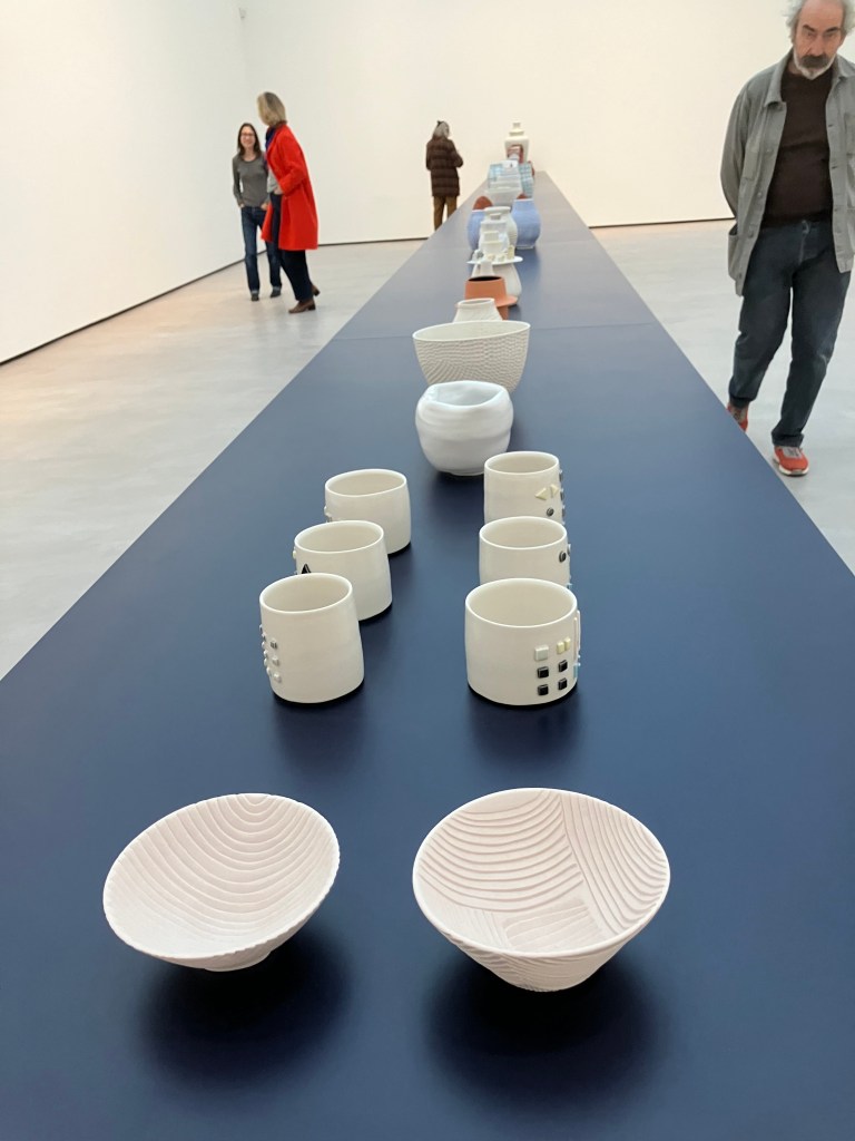 12- en face , à la galerie David Zwirner , au 108 , jusqu’au 5 octobre , on découvre les céramiques inédites , pièces uniques , de Shio Kusaka ,la grande artiste qui a comme référence la grande céramique japonaise. Jomon ,Yayoi,Kofun , celle de la Grèce antique ,la science et le cosmos et travaille par incisions , reliefs ,figures rouges et noires .Le choix a été fait de les présenter sur un socle qui traverse toute le longueur de la galerie , face à nous, par taille .