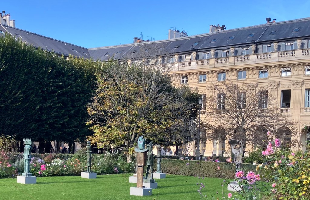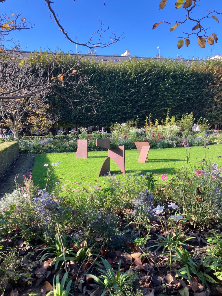 Pas grave , je file – 14 – au palais Royal , envie de voir les sculptures en plein air d’Art Basel, celles de la Fiac autrefois étaient exposées aux Tuileries , nombreuses et commentees par des médiateurs , c’était une jolie promenade , attendue . Là c’est bien différent !!! Juste 6 oeuvres ! Ok !